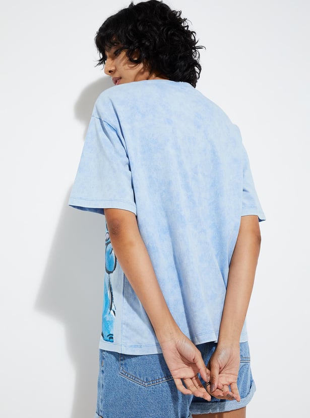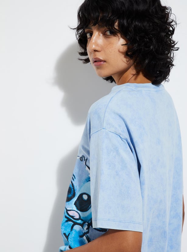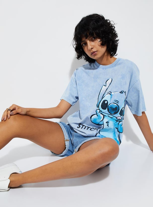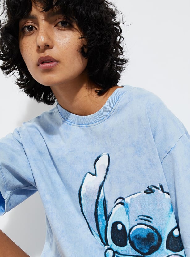 Revamp your street style with this trendy t-shirt. Adorned with a fashionable Stitch print, round neckline, and short sleeves, it infuses an urban flair into your look.