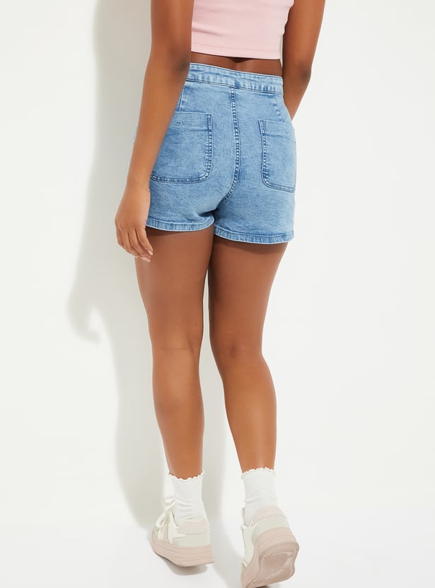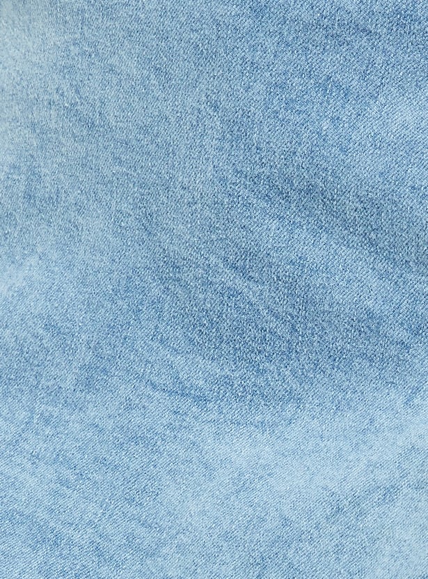 Always remain chic in this pair of denim skort that are designed in a 2-pocket construction, along with a button fly closure in a washed design.