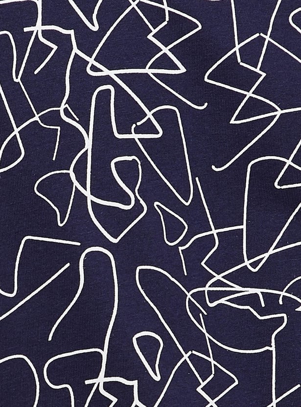 Keep it simple and stylish in this top highlighted with abstract prints, a round neckline, and short sleeves.