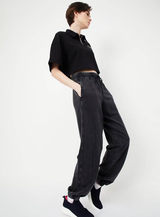 Set yourself up for the gym with these joggers featuring an acid-washed surface, an elasticated waist, and convenient pockets. Designed for both style and functionality, they offer a baggy fit that ensures comfort during your workouts. Model Size :