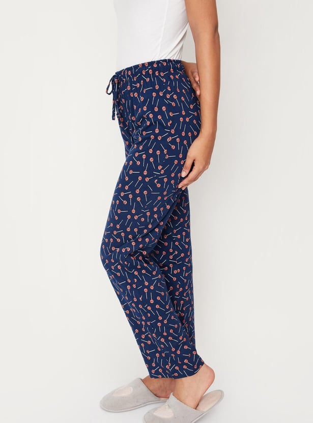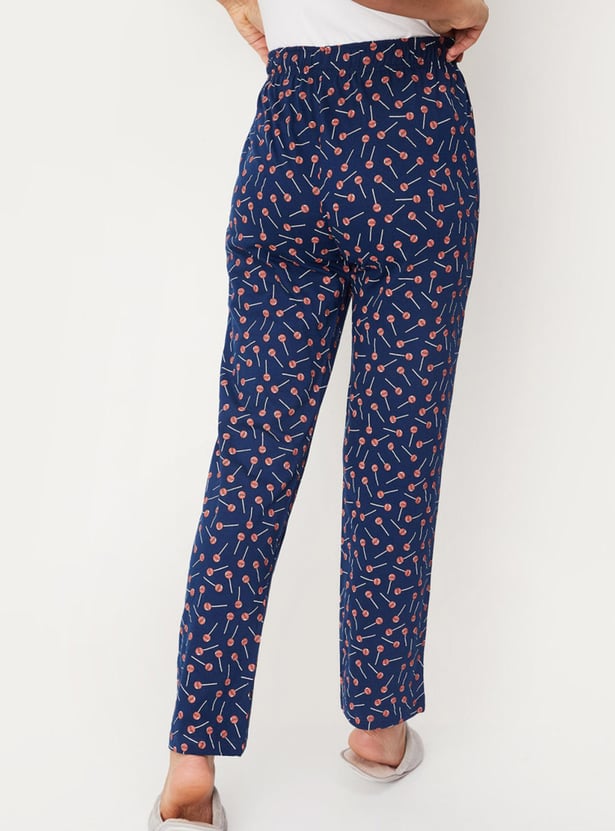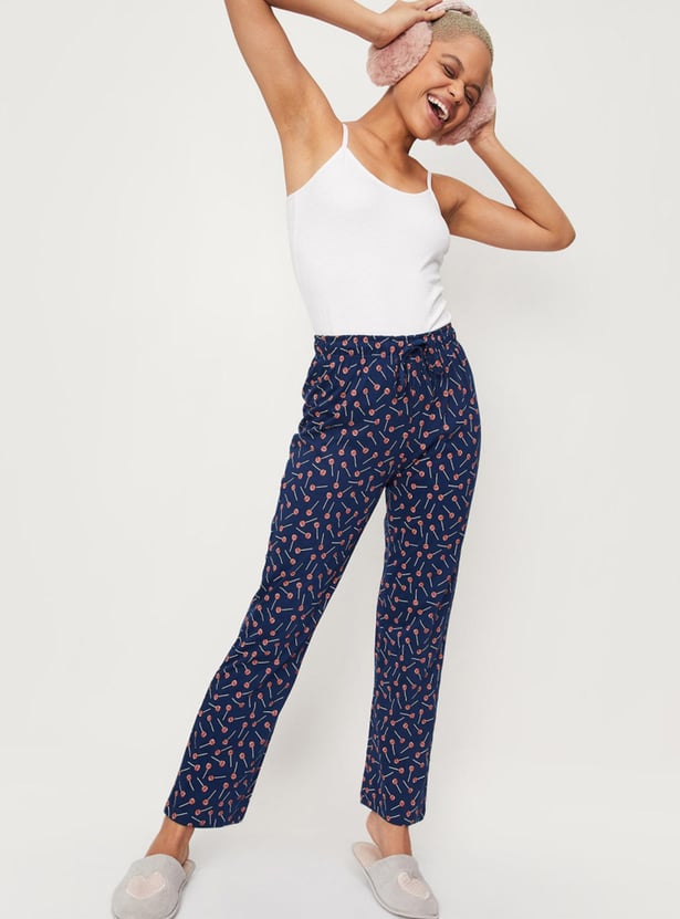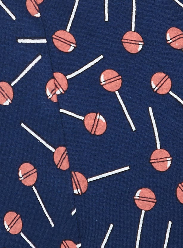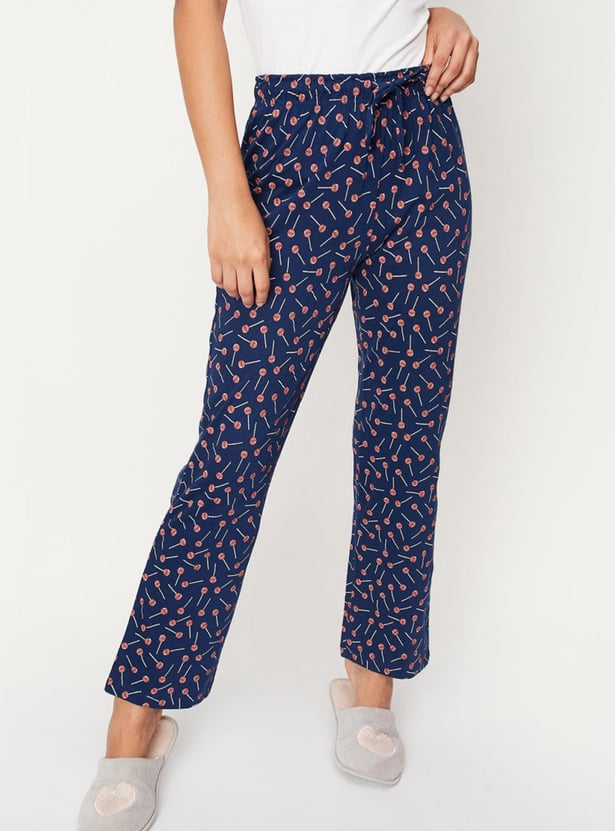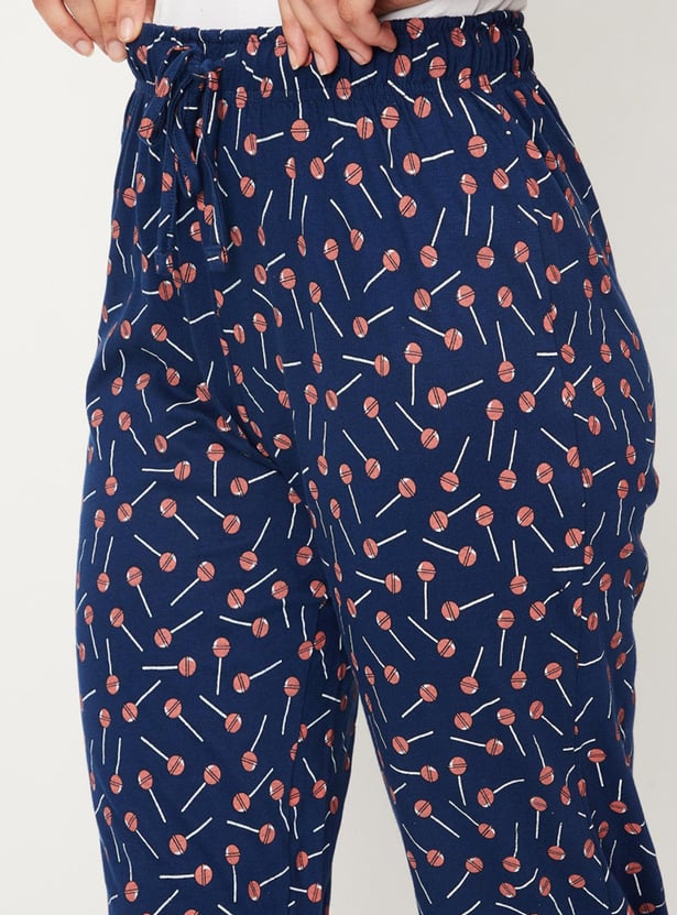 Lounge around your home in the comfort of this pair of pyjamas. It is highlighted with all-over lolly pop prints for a quirky look, a drawstring waist, and a full-length profile.