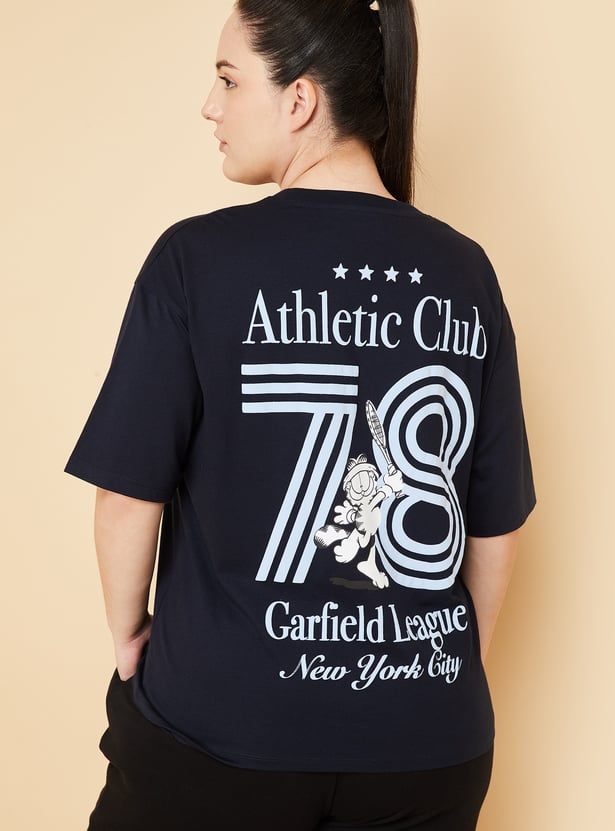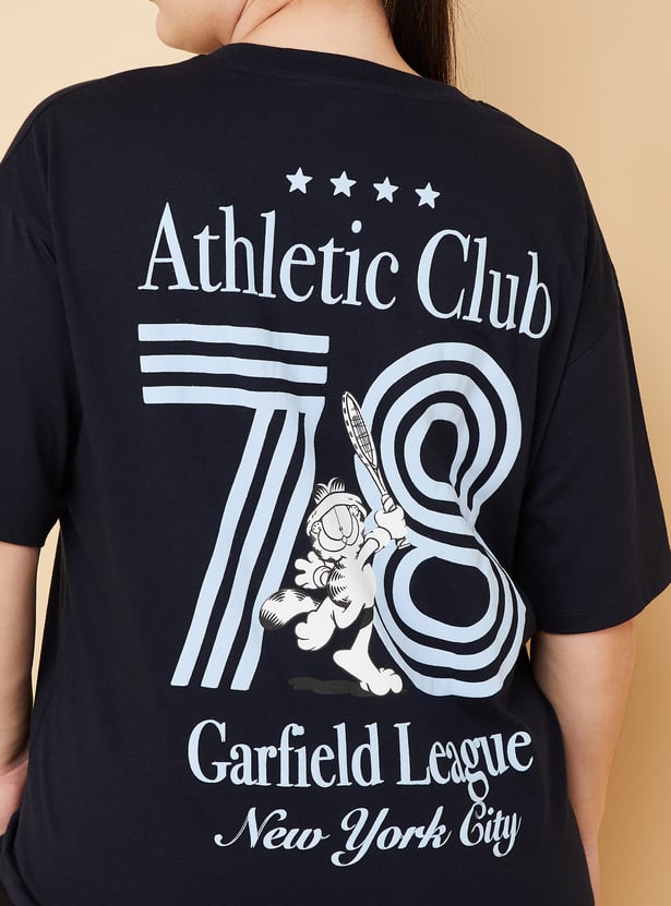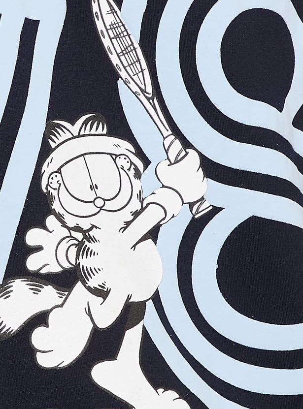 Add a playful touch to everyday style with this back Garfield print sports T-shirt, featuring a classic round neck and half sleeves. The quirky back graphic brings fun and character, making it perfect for casual outings or relaxed weekends. Model Size :