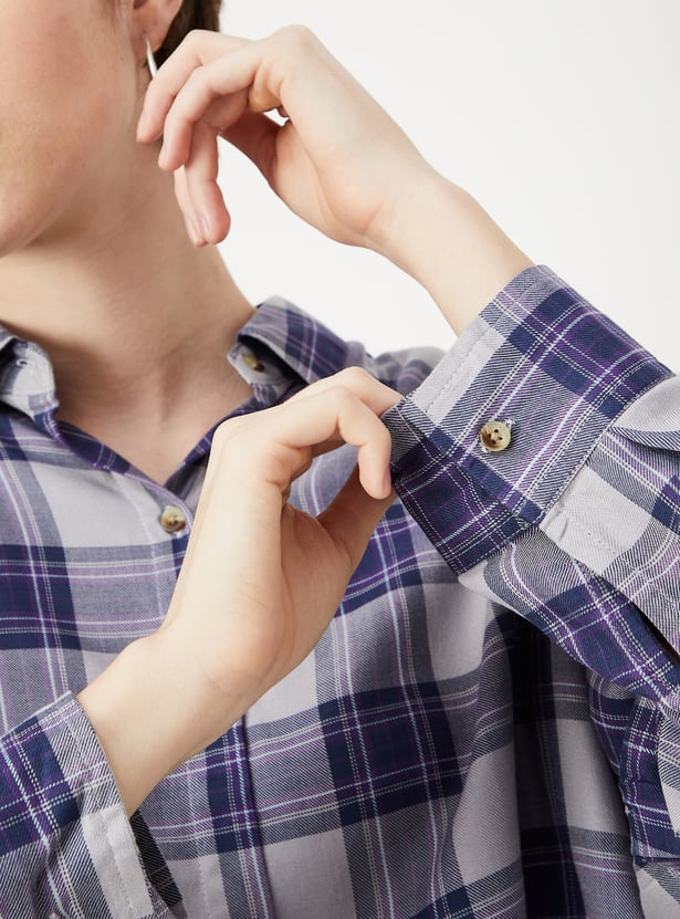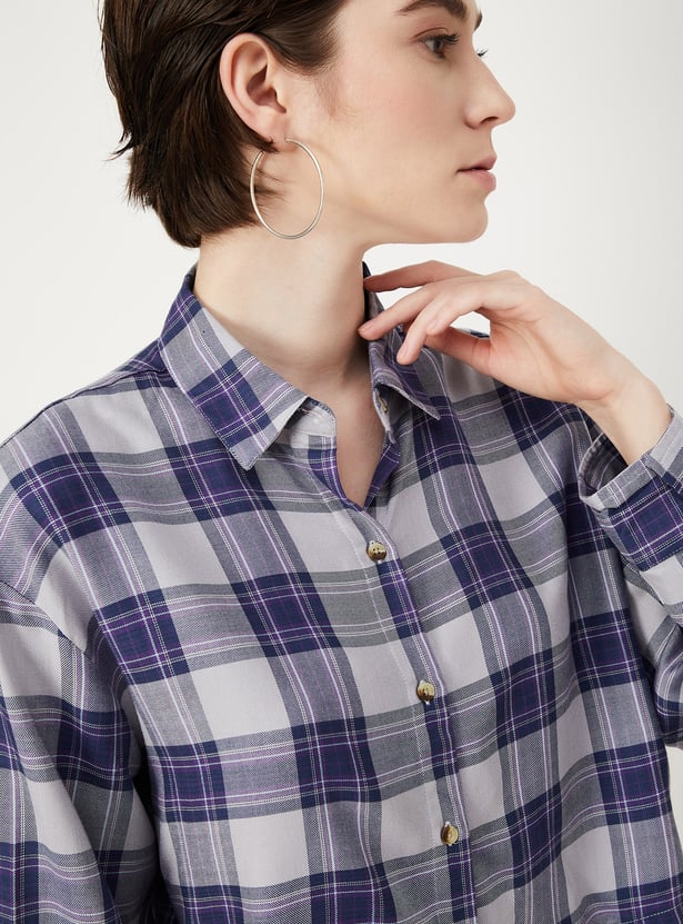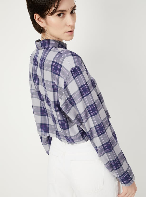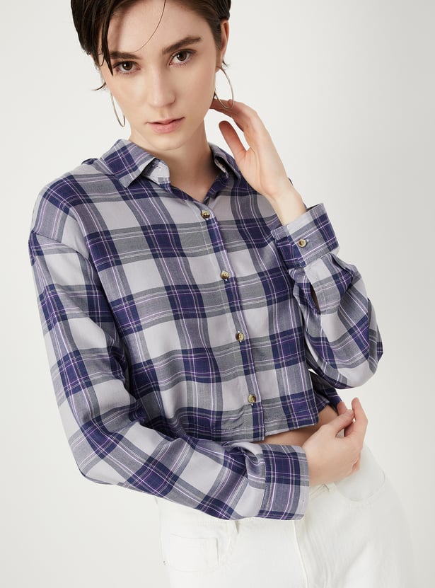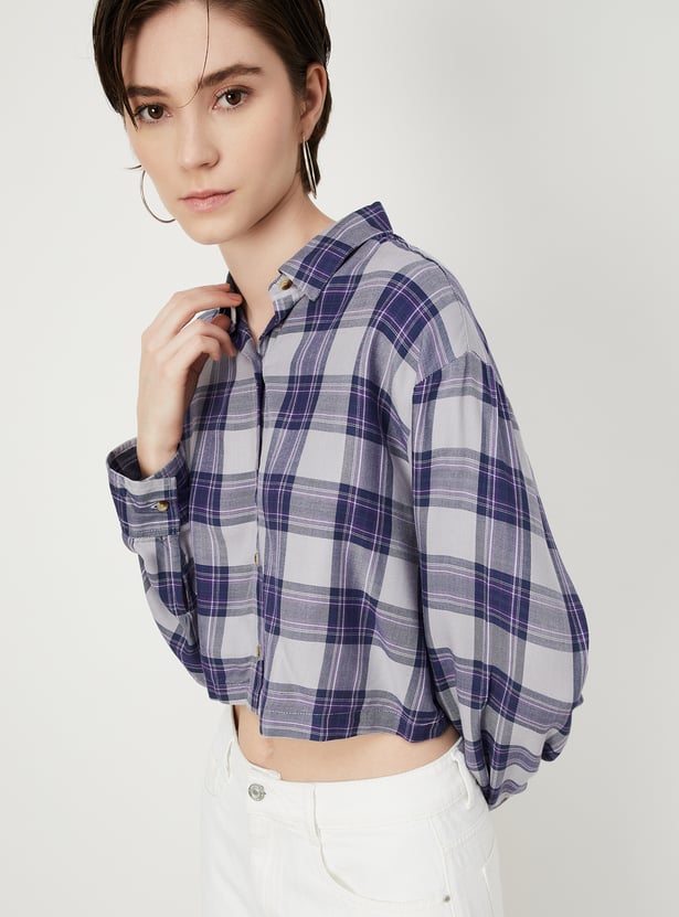 Women Checked Cropped Shirt