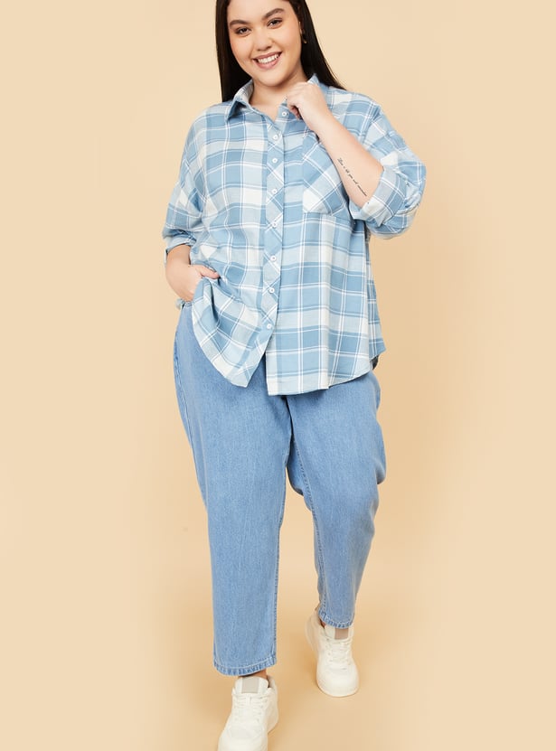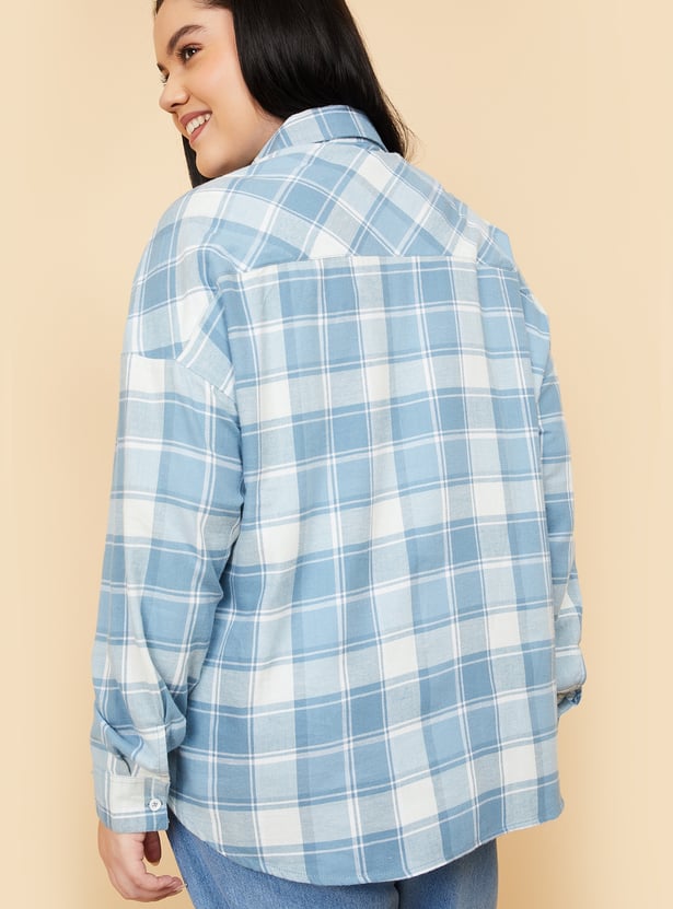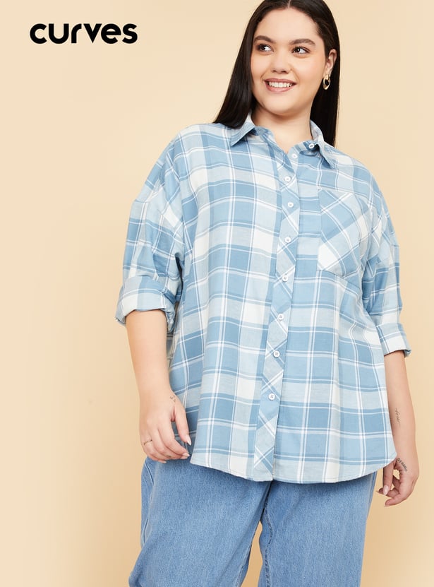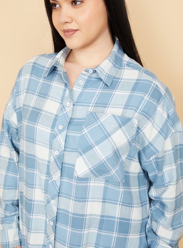 Keep it classic with this checked oversized shirt, featuring a spread collar, button placket, full sleeves with button cuffs, and a patch pocket. A timeless staple for both casual and semi-formal occasions.