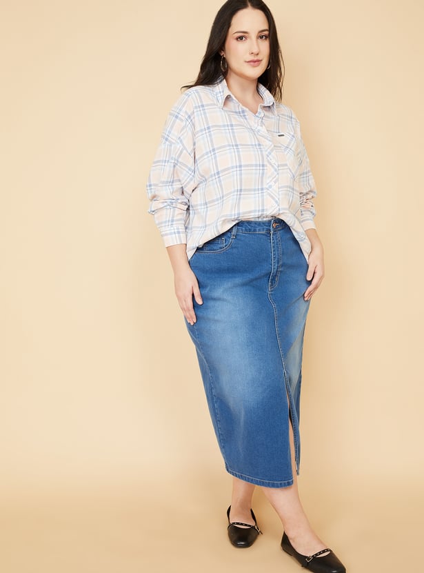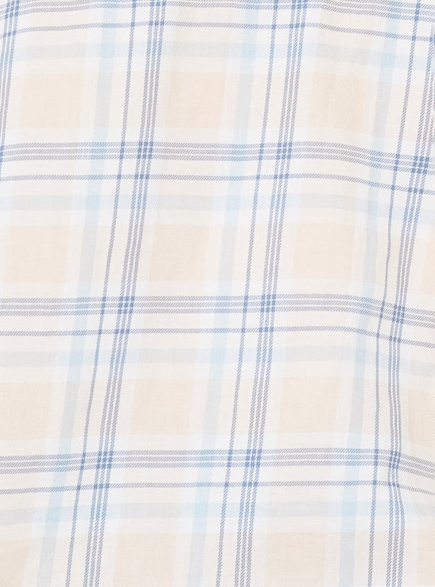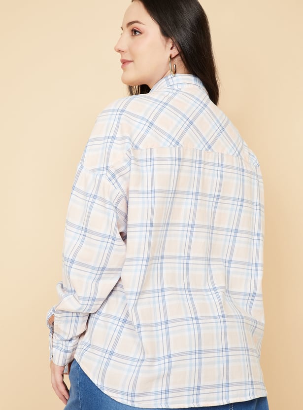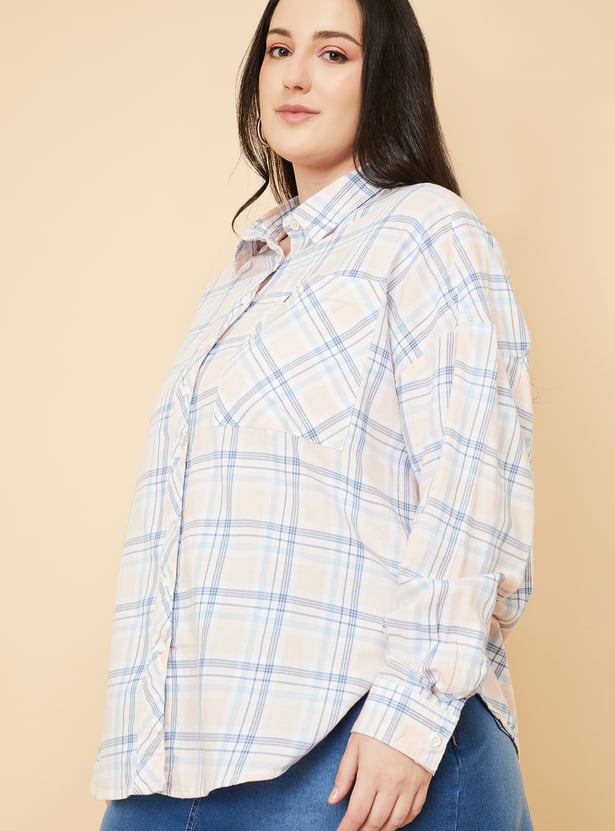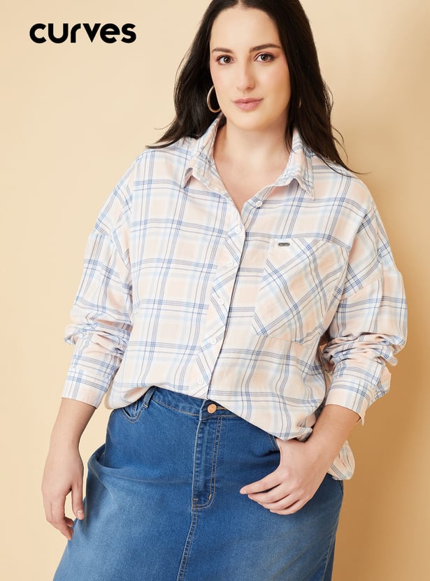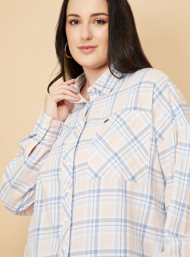 Add a relaxed edge to your wardrobe with this oversized checked shirt, tailored with a classic spread collar and a neat button placket. Designed with full sleeves and button cuffs, it also features a functional patch pocket for added detail and everyday ease. Model Size :