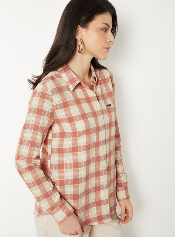 Refresh your casual wardrobe with this checked shirt designed for relaxed style. Featuring a regular fit, full sleeves, a spread collar, and a button placket for effortless everyday wear.