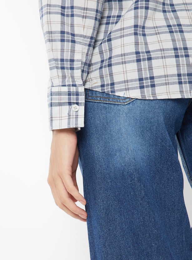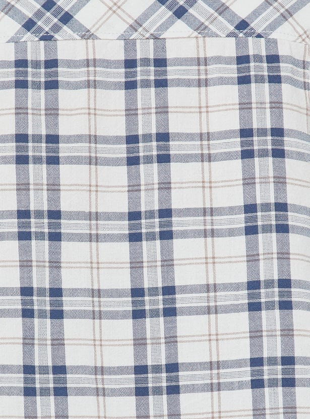 Refresh your casual wardrobe with this checked shirt designed for relaxed style. Featuring a slim fit, full sleeves, spread collar, patch pockets, and a button placket for effortless everyday wear.