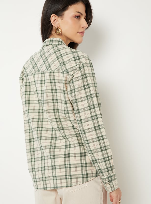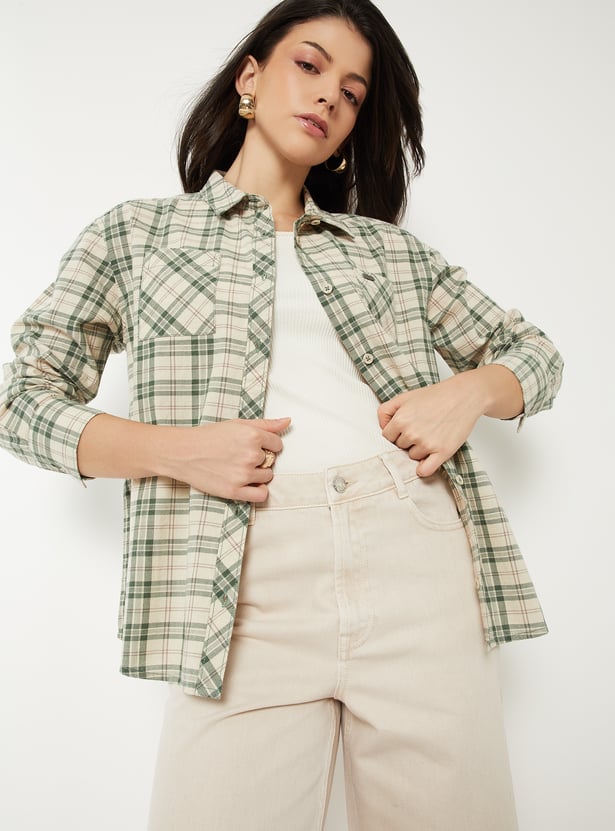 Refresh your casual wardrobe with this checked shirt designed for relaxed style. Featuring a slim fit, full sleeves, spread collar, patch pockets, and a button placket for effortless everyday wear.