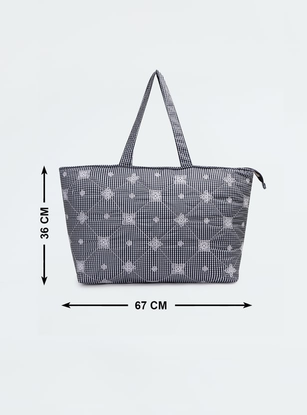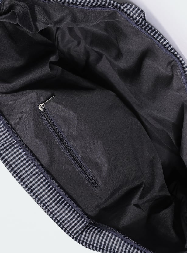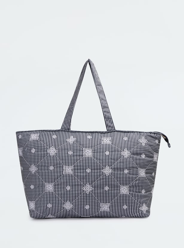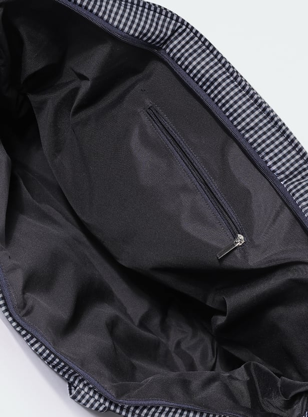 Add a touch of style to your everyday essentials with this checked tote bag! Featuring a secure zip closure and twin handles, it’s perfect for keeping your belongings organized while making a bold statement. The classic checkered print adds a timeless charm to any outfit.