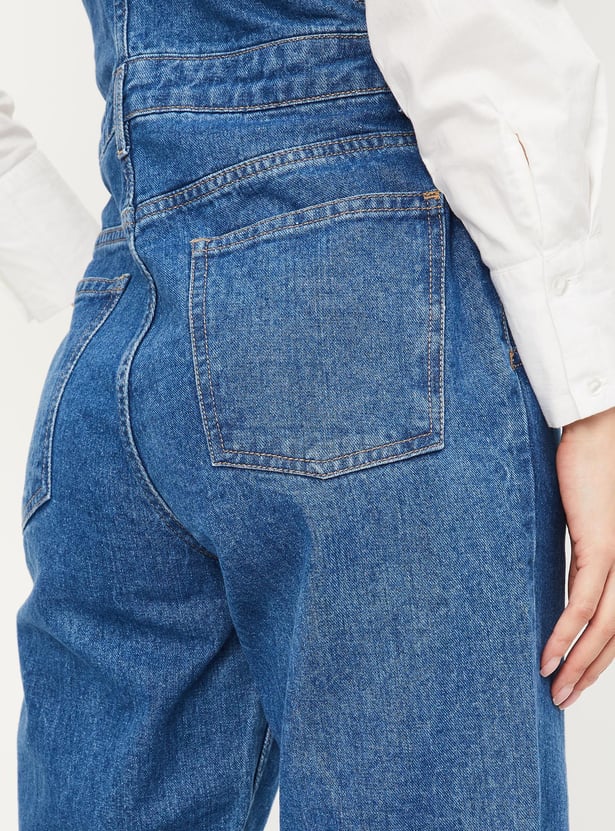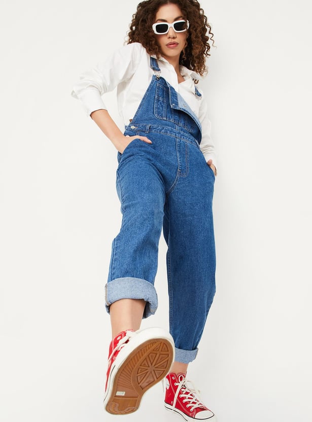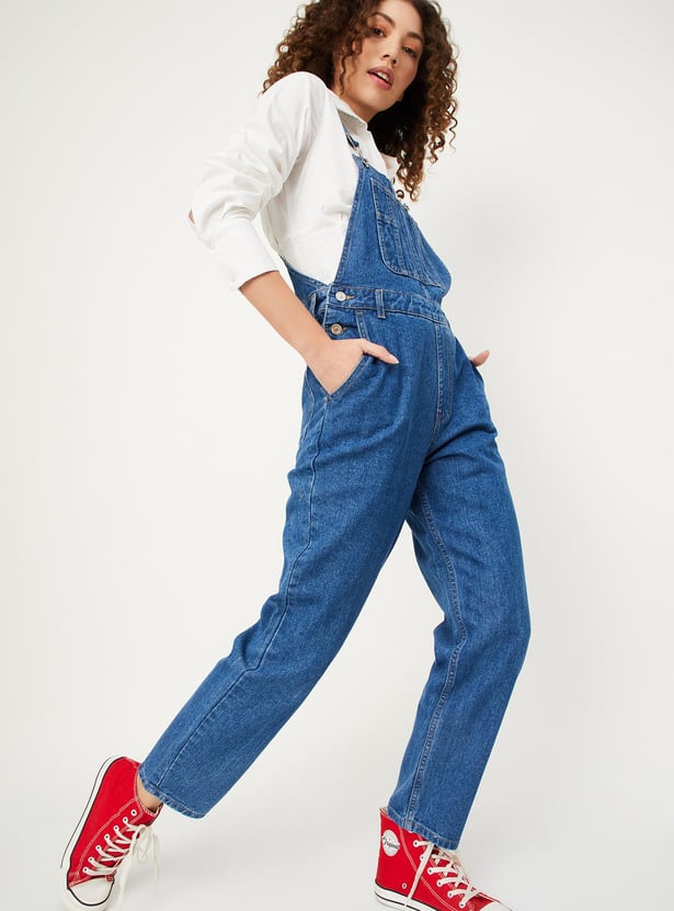 Raise your street cred with this dungaree cut from denim. It has shoulder straps with button closure, a front patch pocket, belt loops at the waist, waist pockets, and back patch pockets, and a full-length profile.