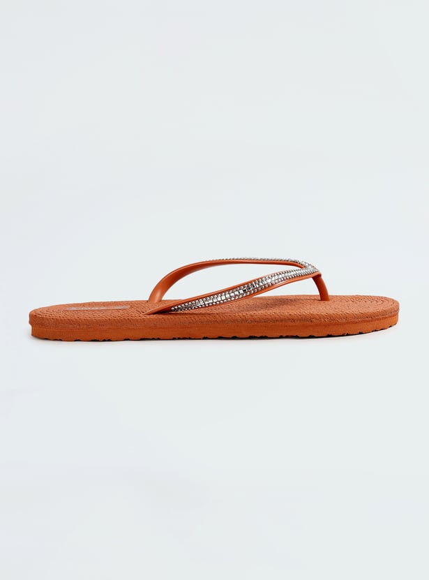 Women Embellished V-Strap Slippers