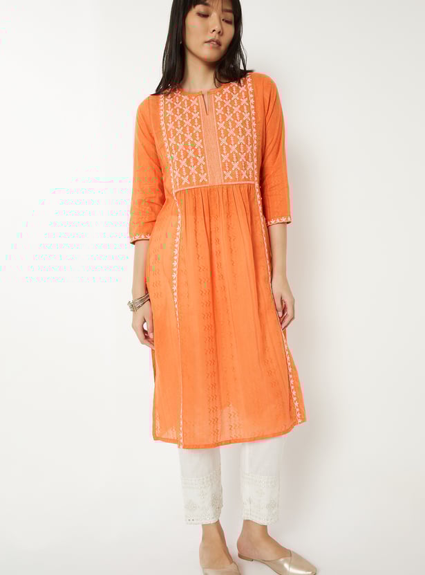 Women Embroidered Straight Kurta