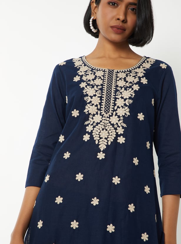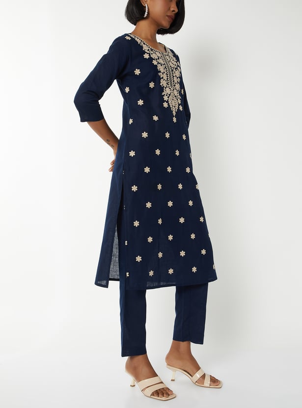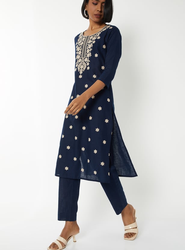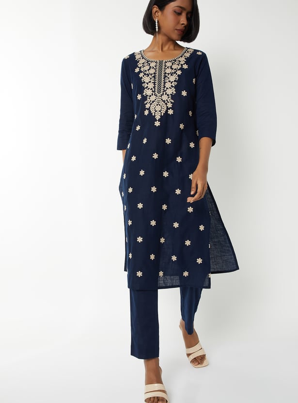 Women Embroidered Straight Kurta Set
