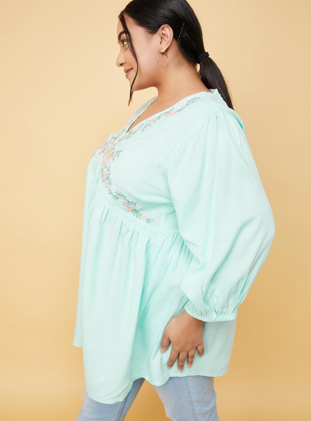 Women Embroidered V-Neck Tunic