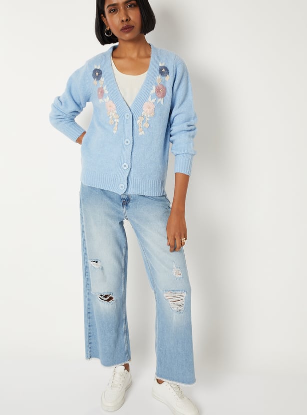 Women Floral Embroidered Cardigan