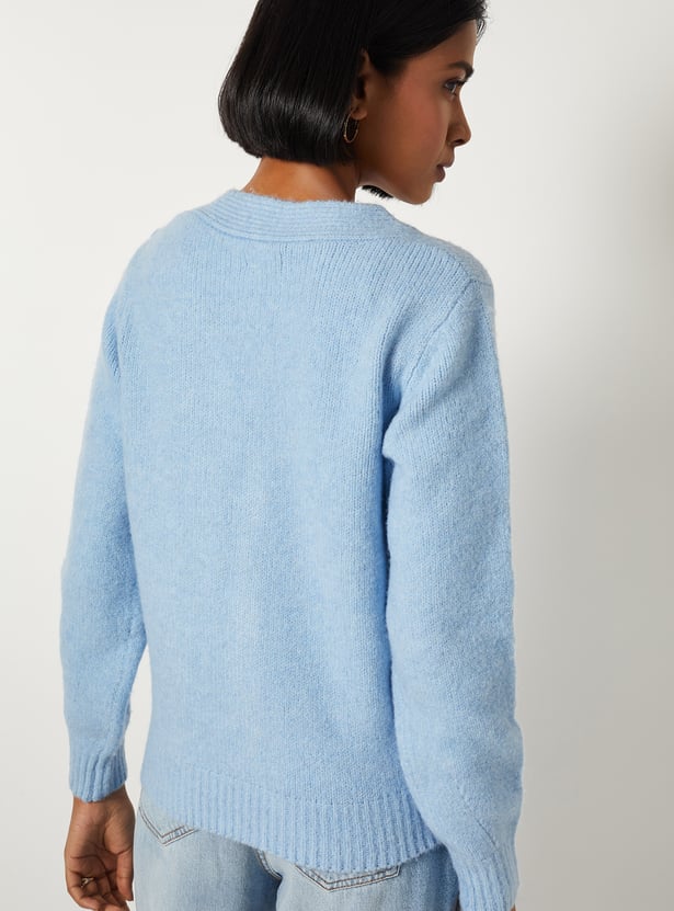 Stay cosy and elegant in this floral embroidered cardigan, featuring a V-neck, full sleeves, and a button closure for a classic touch. The delicate embroidery adds charm to your everyday style. Model Size :