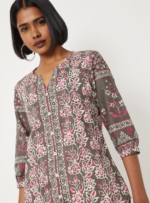 Women Floral Print Notch Neck Kurti
