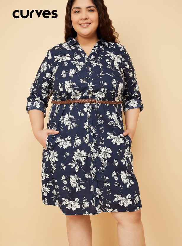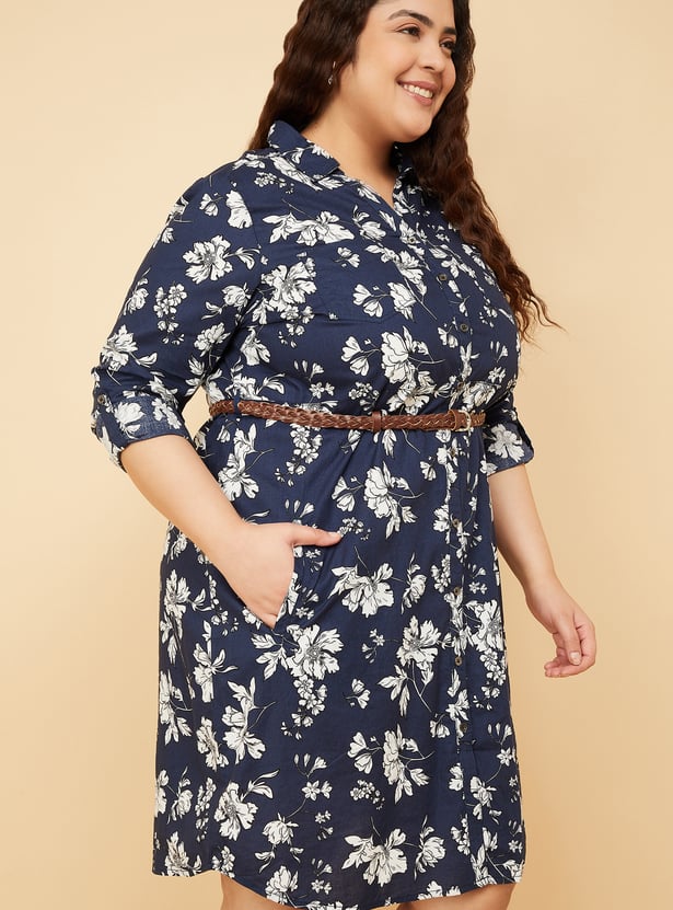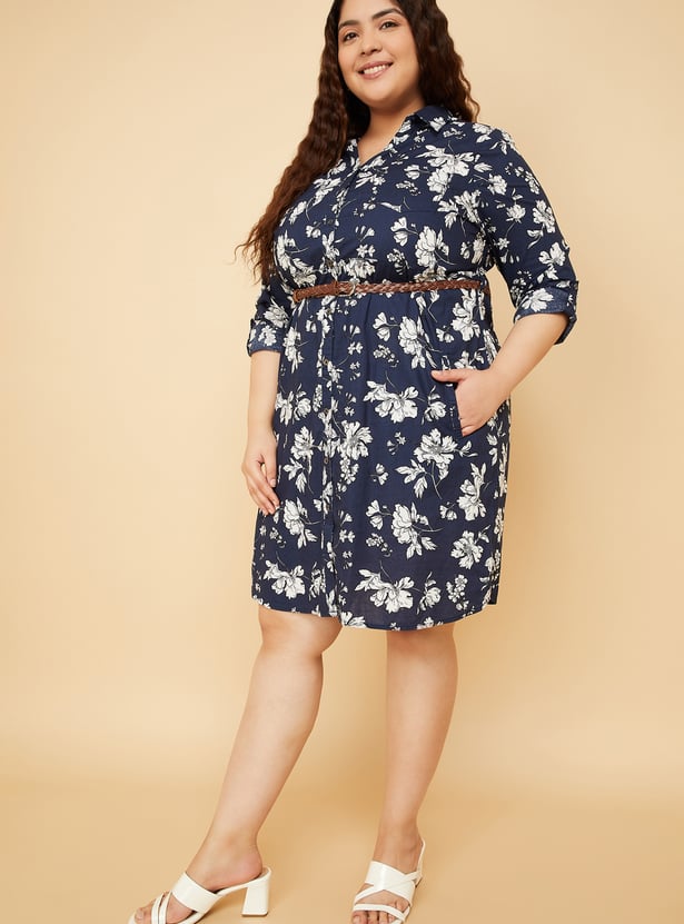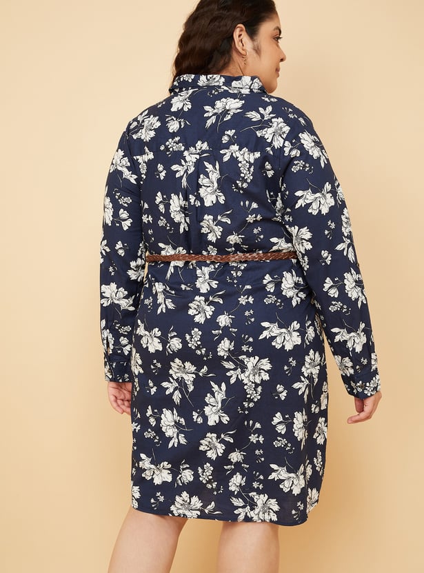 Women Floral Print Shirt Dress with Belt