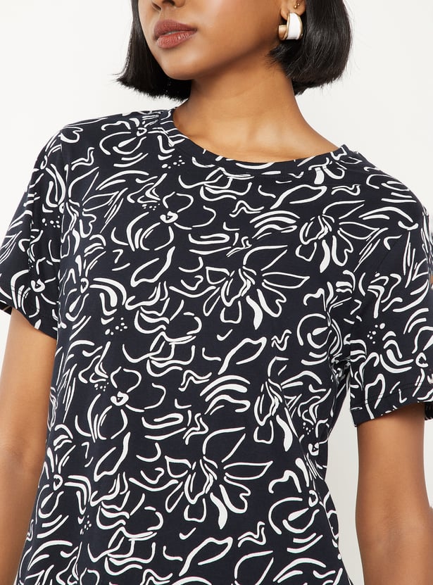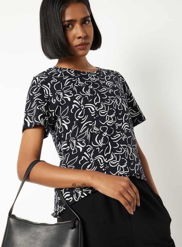 Refresh your everyday look with this floral print T-shirt. Featuring a classic round neck and half sleeves, it offers a relaxed fit with effortless charm.