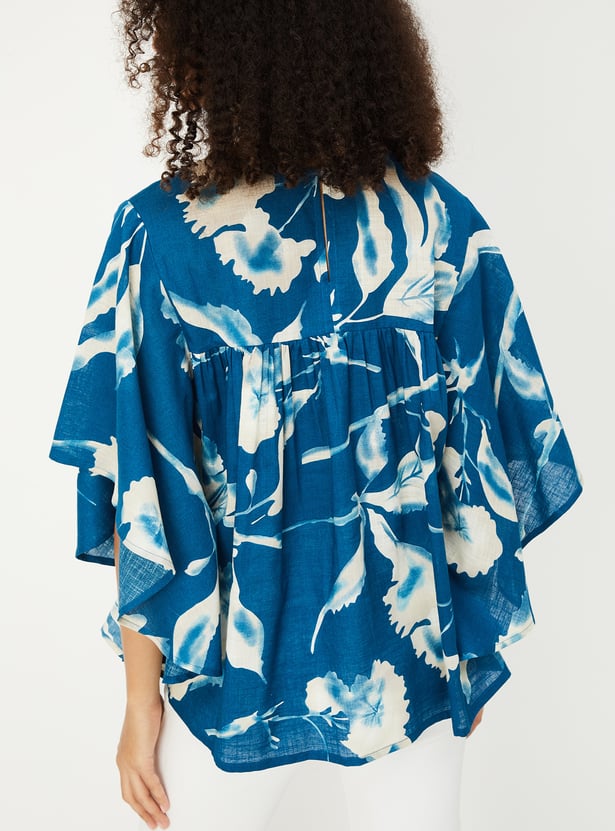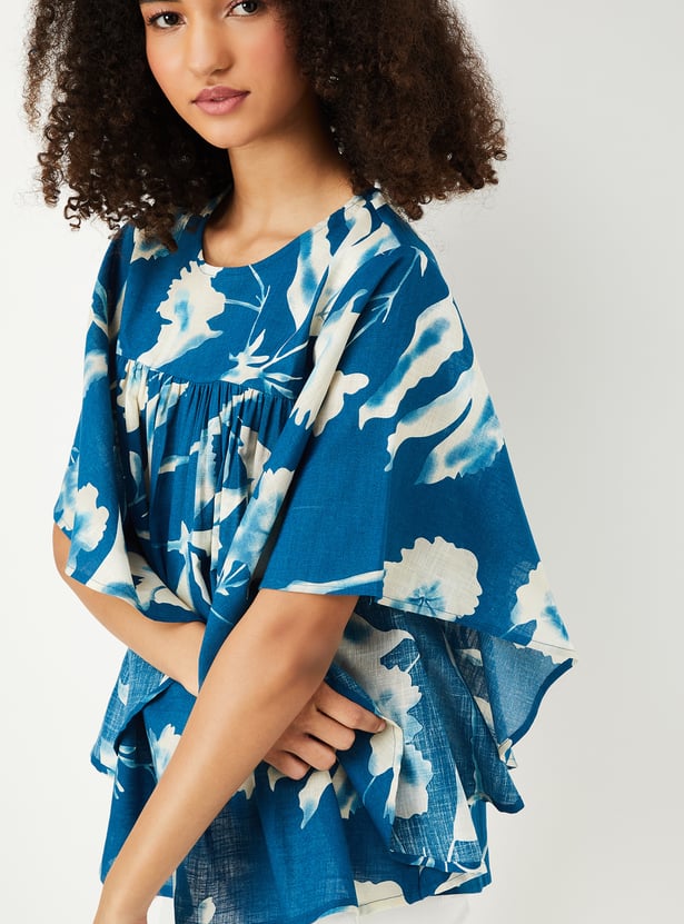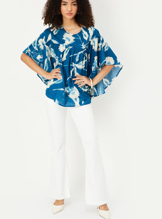 Feminine and flowy, this tunic features a soft round neck and flared batwing sleeves, finished with an all-over floral print that brings a touch of charm to any day.
