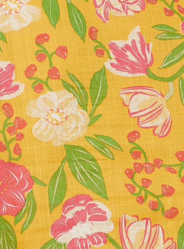 This floral print tunic features a flattering V-neck, 3/4th gathered sleeves, and a stylish cut-yoke design that adds dimension and charm. Its easy, flowy silhouette makes it perfect for everyday elegance with a touch of flair.