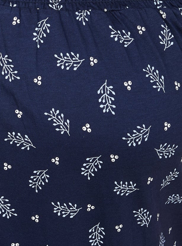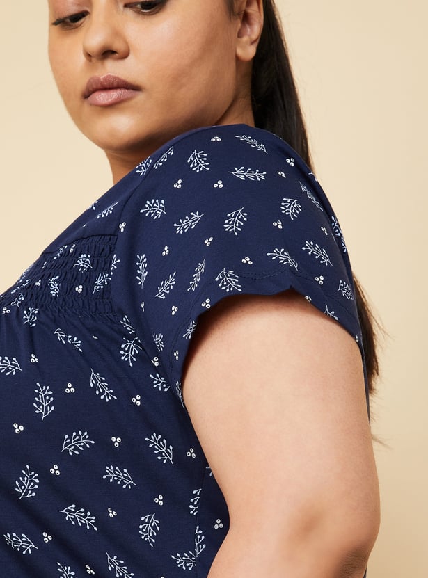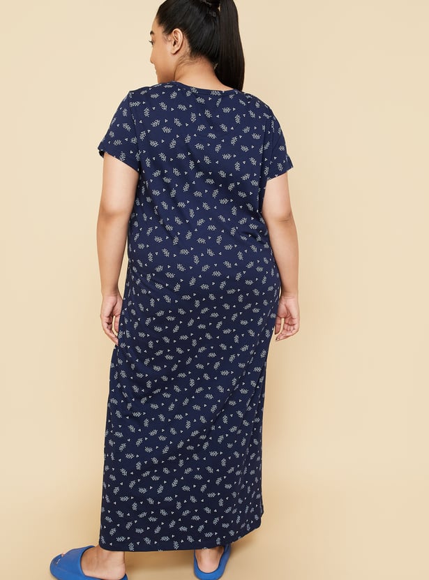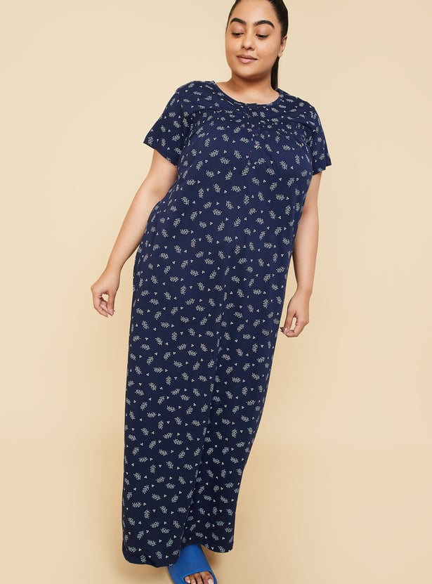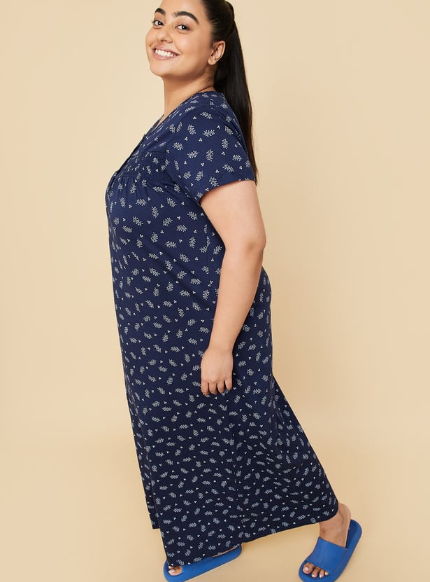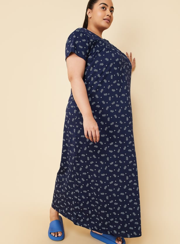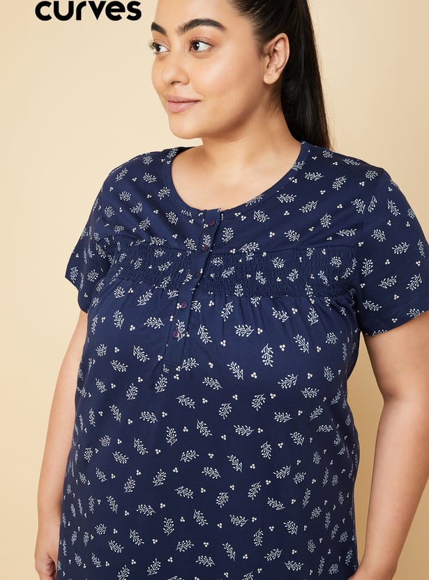 Get a good night's sleep by relaxing in this nightgown. It features all-over prints, a round neck, short sleeves, a smocked detail at the yoke, and a button closure.