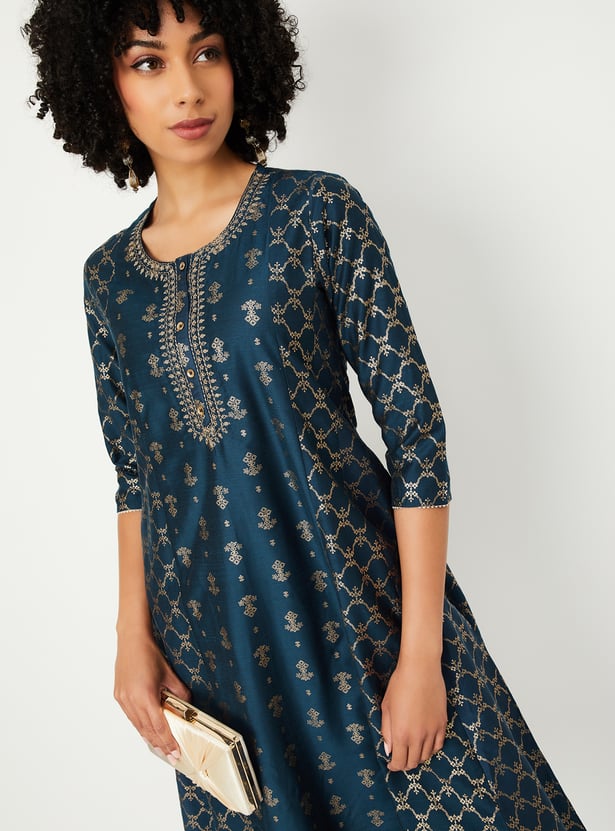Women Foil Print A-line Kurta Set