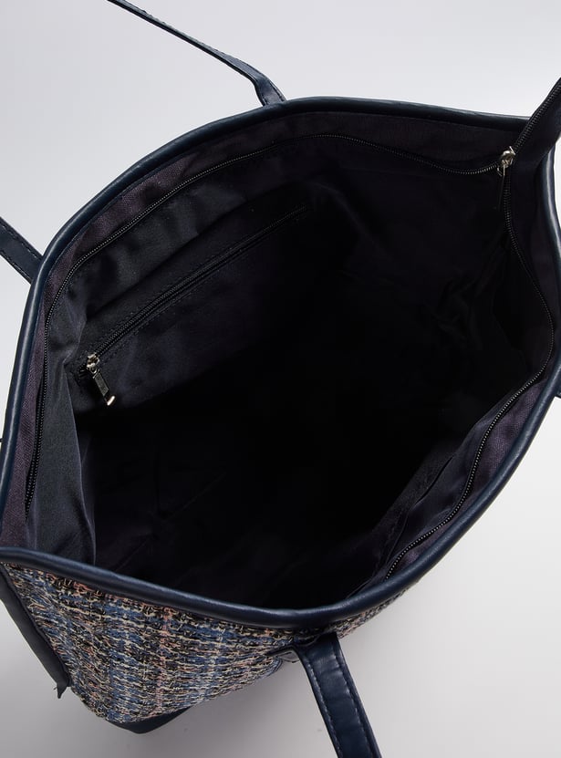 Stay organised and stylish with this bag. Equipped with a dedicated laptop compartment, a zip pocket, and a spacious main compartment with a secure zip-top, this bag ensures your tech and essentials are organized and protected. The jacquard design adds a sophisticated touch, making it perfect for work or travel.