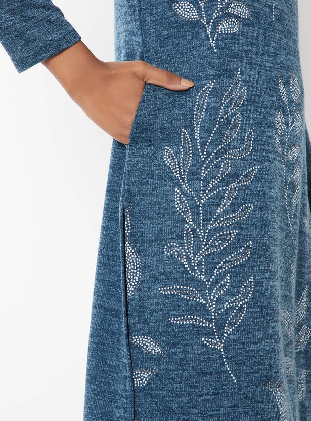 Stay warm in style with this knit straight winter kurta, designed for cozy comfort and effortless elegance. It features a round neck, full sleeves, side slits, and a practical side pocket—perfect for chilly days.