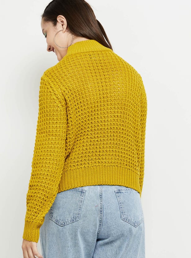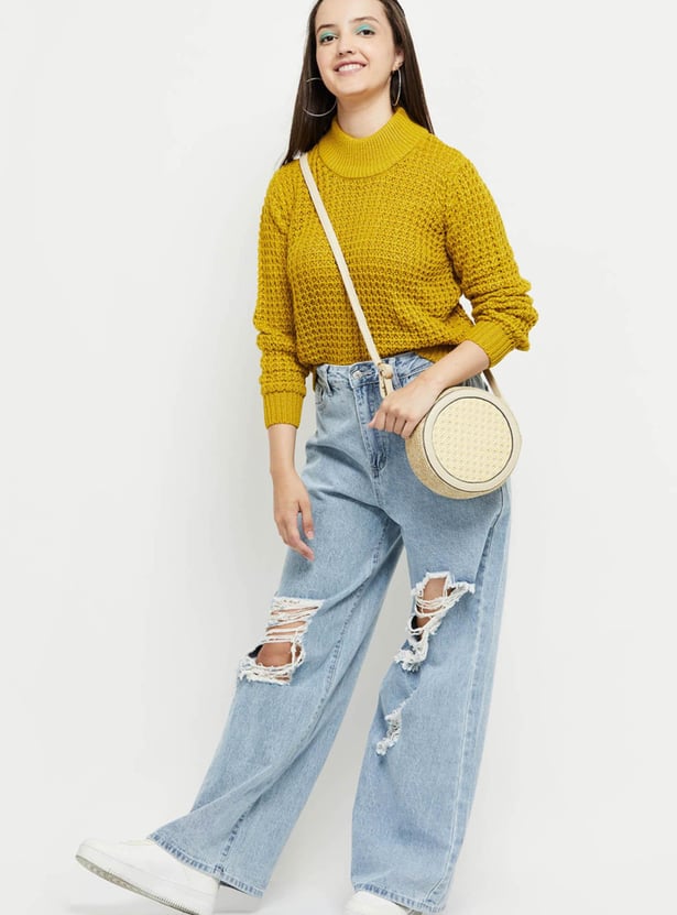 Keep yourself cozy and warm this winter with this sweater which has a high neck and long sleeves. Layer it over a tee and jeans for a stylish yet dapper look.