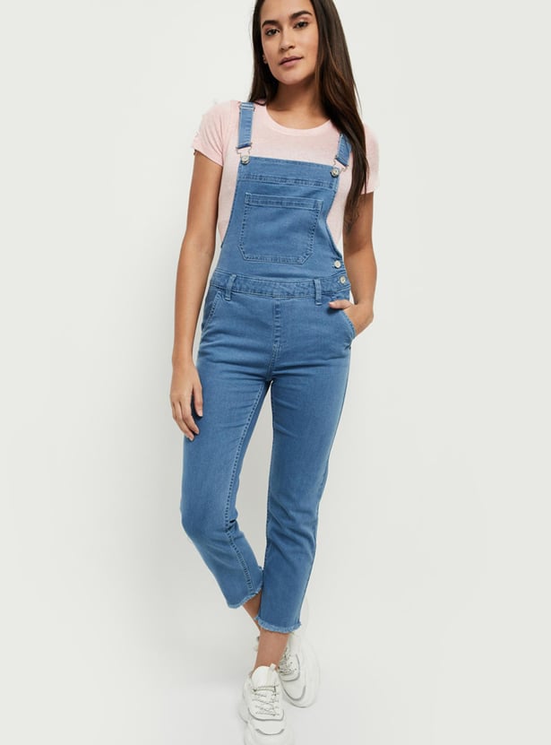 This pair of dungarees feature a washed detail with button closure at the sides. The overall look is enhanced by teaming it with a printed tee.