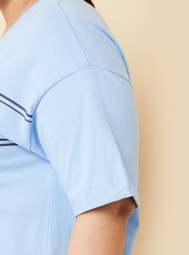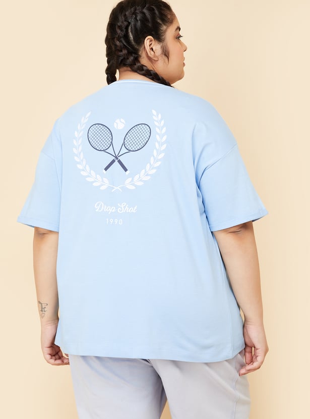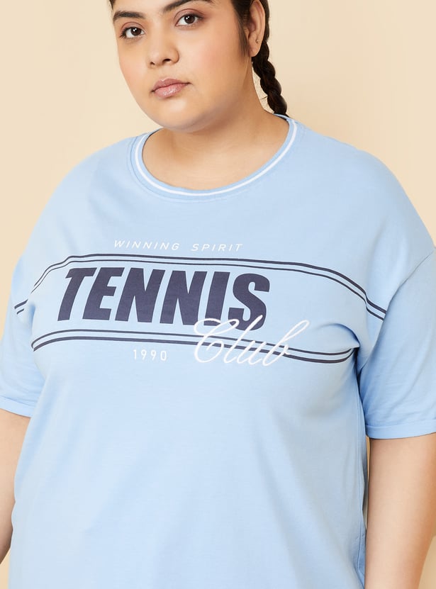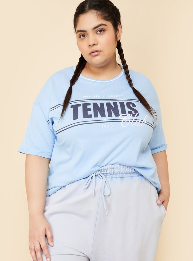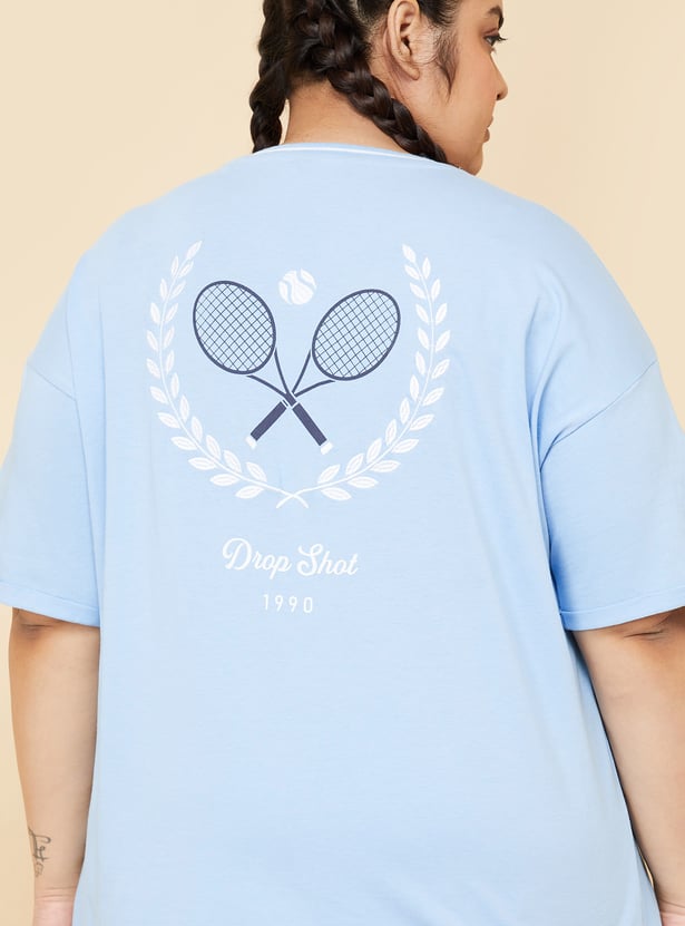 Elevate your athleisure wardrobe with this oversized printed T-shirt. Featuring a classic round neck and half sleeves, it offers a relaxed fit for all-day comfort. Perfect for a laid-back, sporty vibe. Model Size :