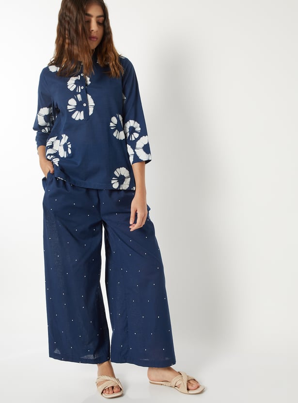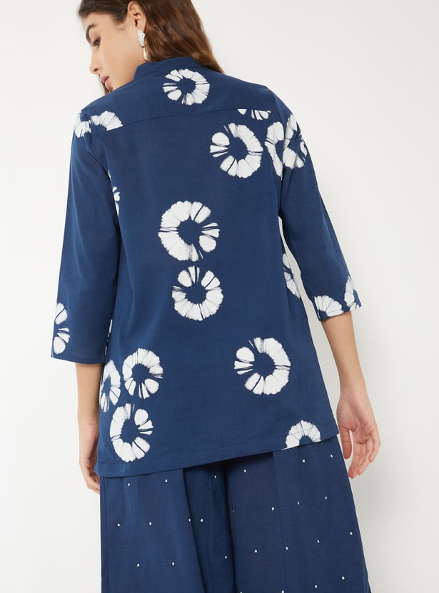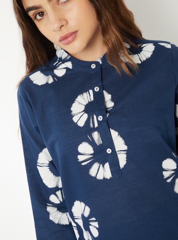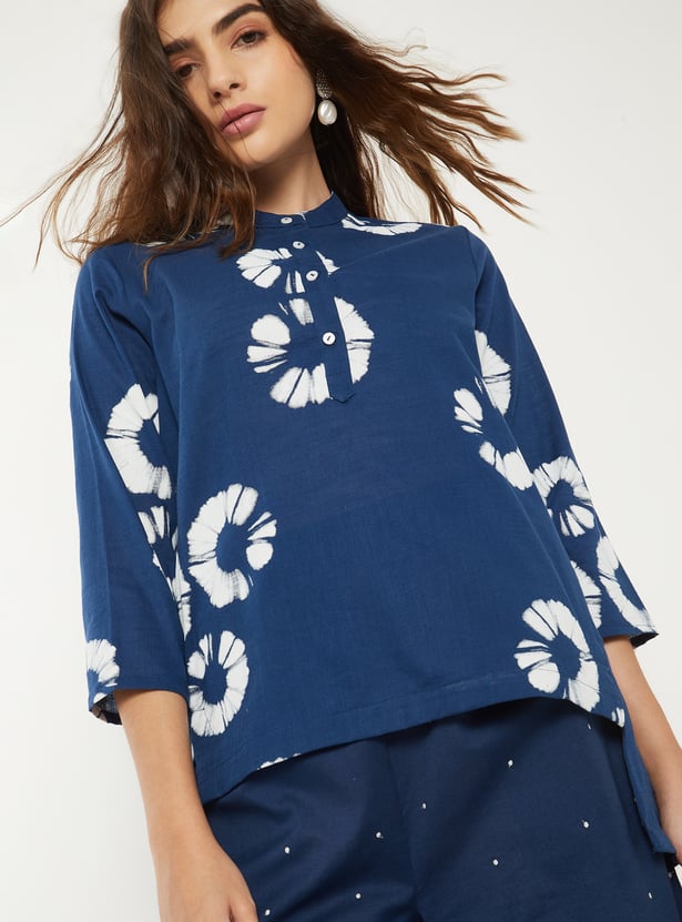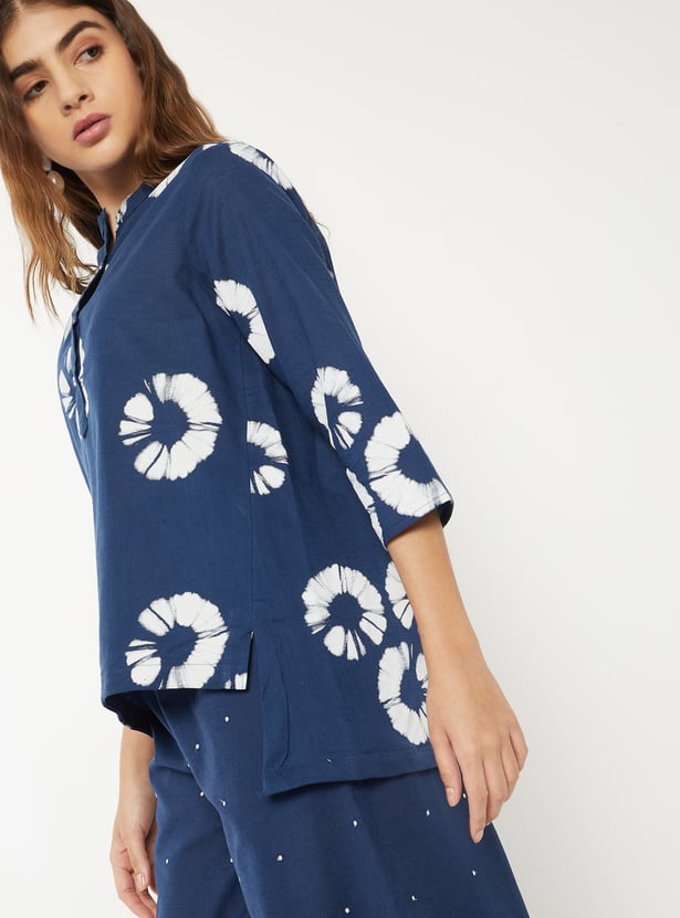 Stay updated with the latest in fashion with this trendy tunic featuring a band collar and three-quarter sleeves. It’s designed with a printed design for a stylish edge. Crafted from soft, breathable fabric, it ensures all-day comfort while keeping your style on point.