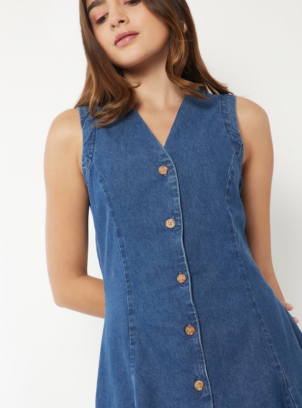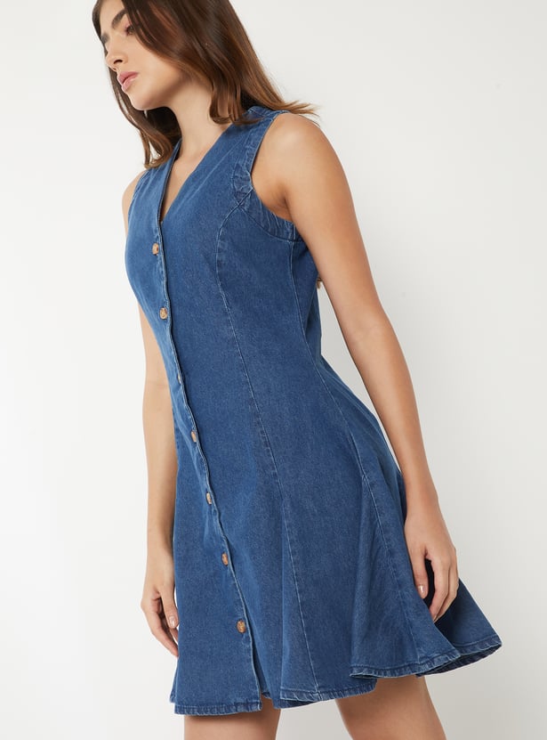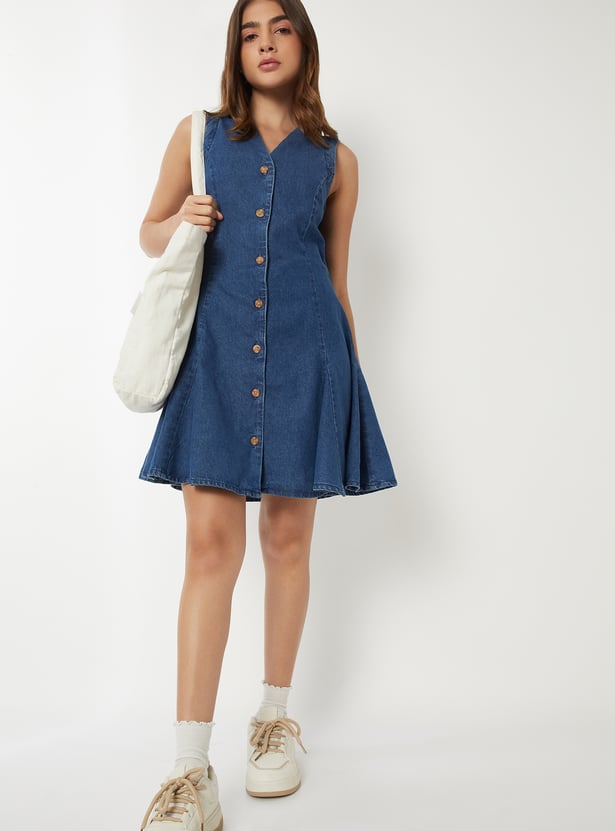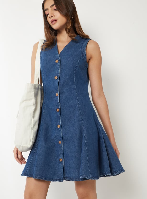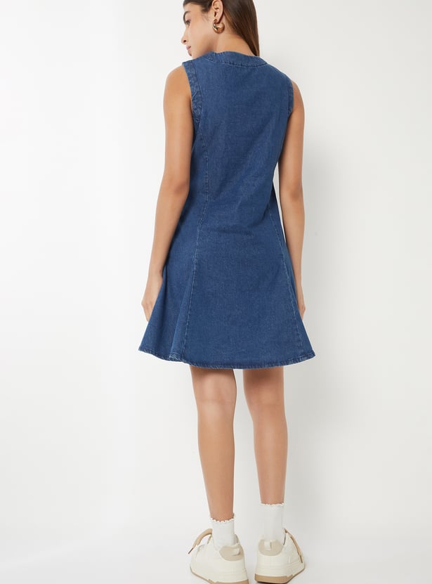 Women Panelled Denim Skater Dress