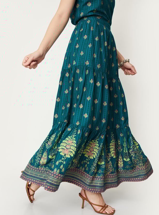 Women Placement Printed Tiered Skirt
