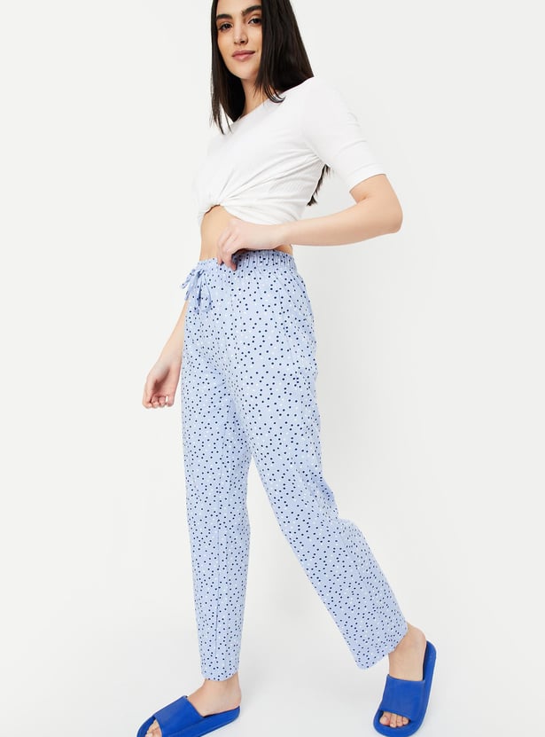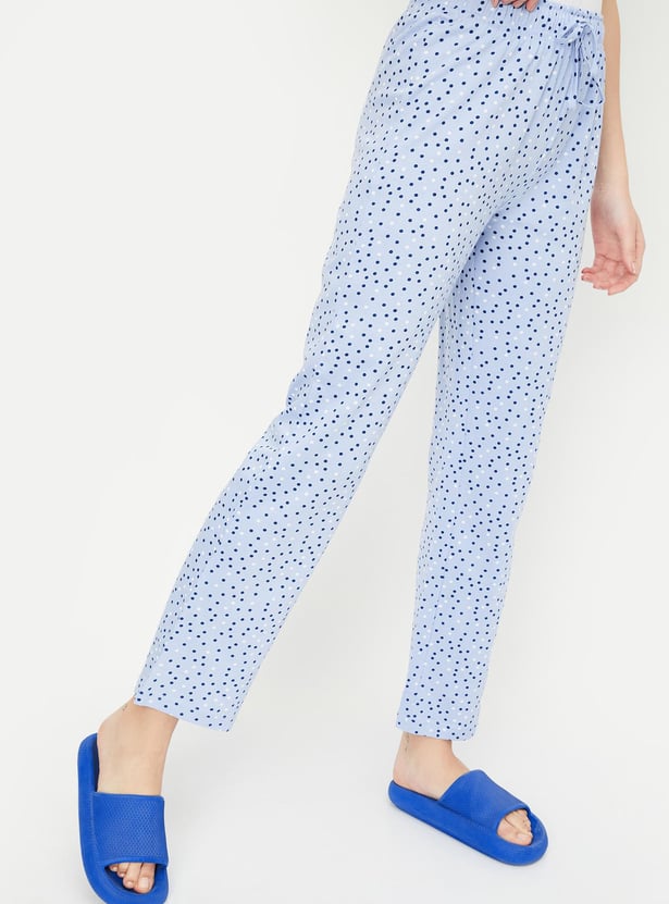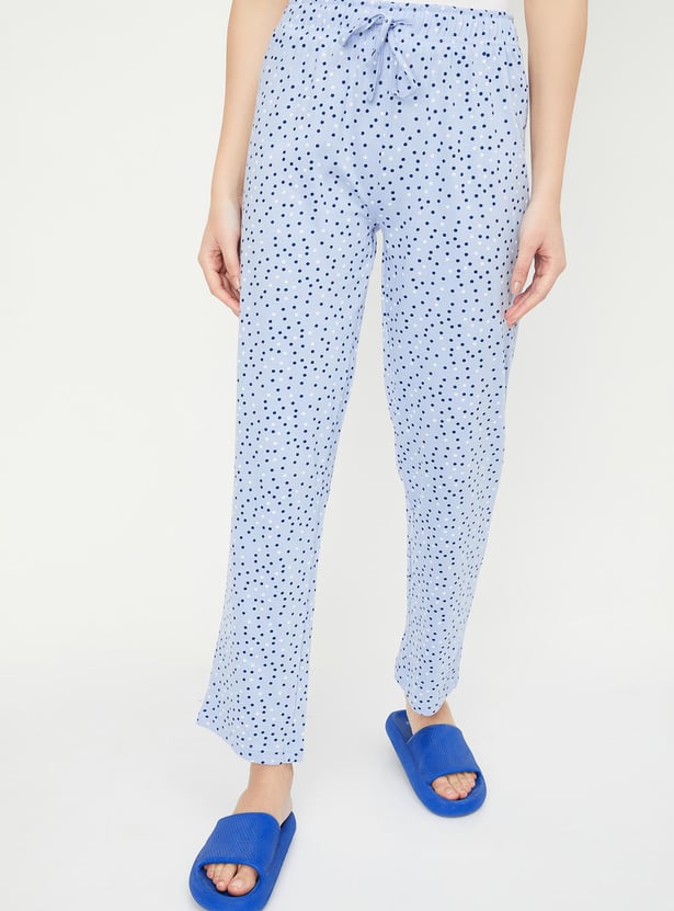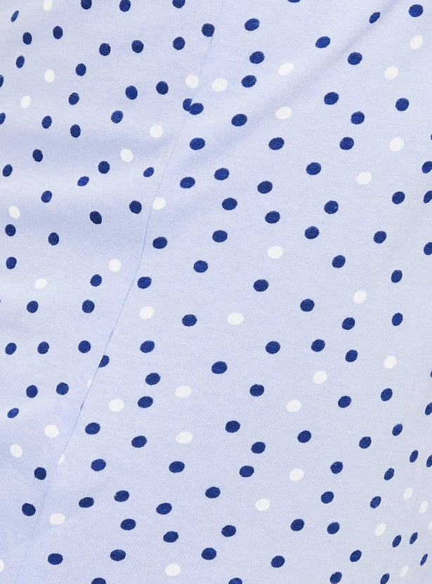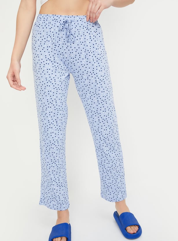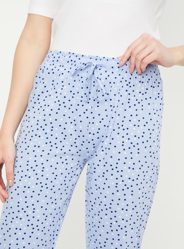 Stay comfortable and cosy all day with this pair of pyjamas. It features a polka dot print, drawstring closure, and full-length construction.