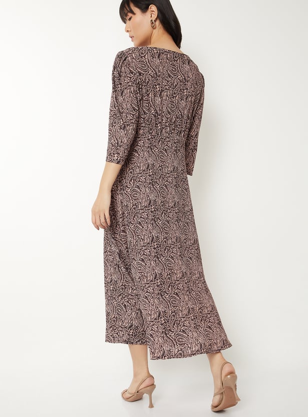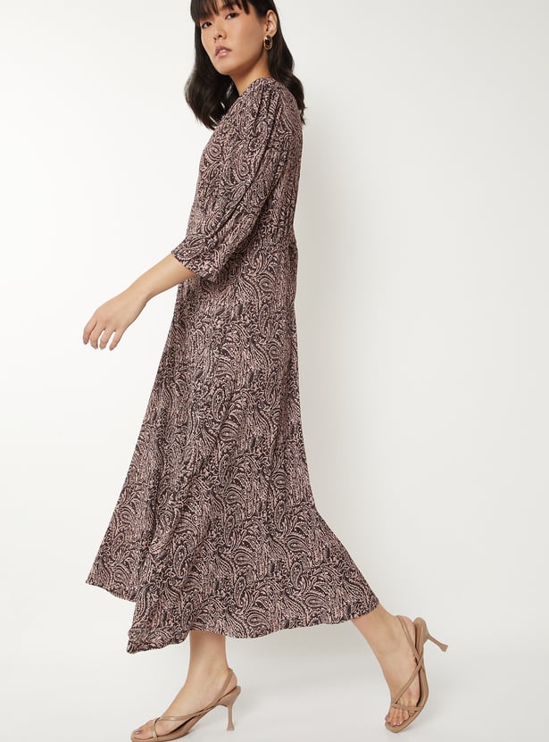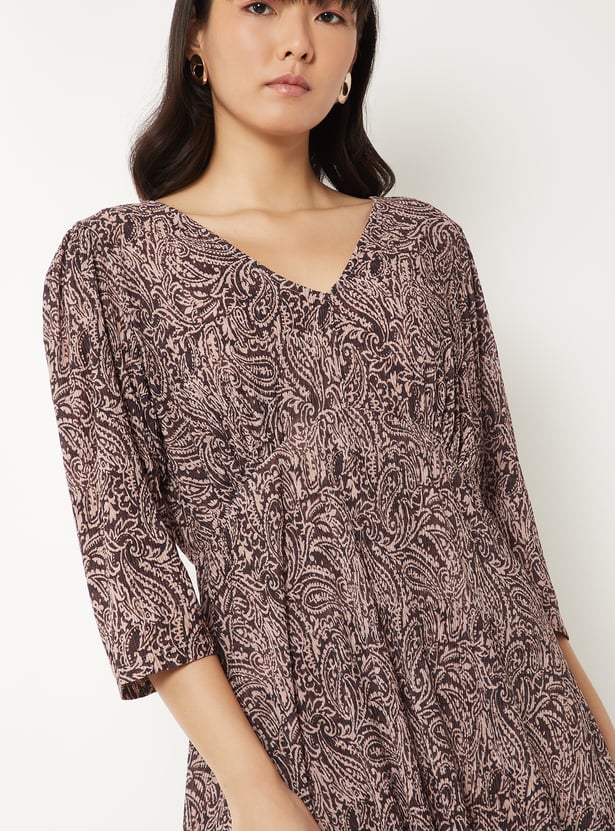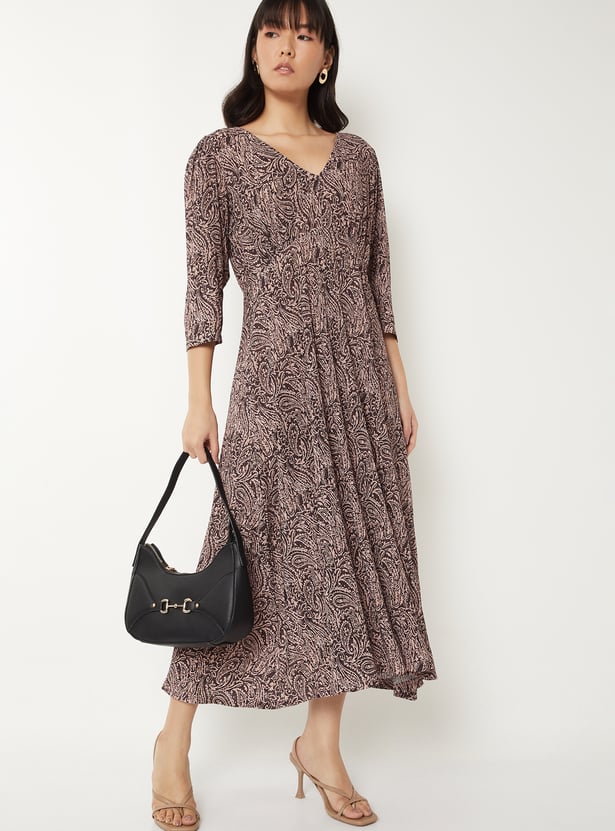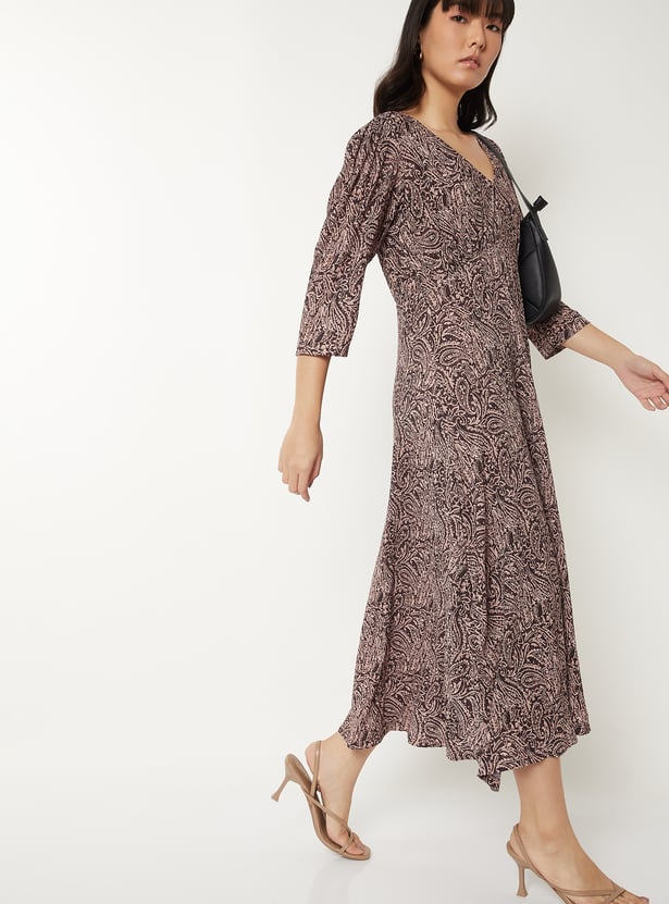 Make everyday dressing effortless with this printed A-line midi dress featuring a flattering V-neck and easy 3/4th sleeves. The flowy A-line silhouette adds movement and comfort for all-day wear.