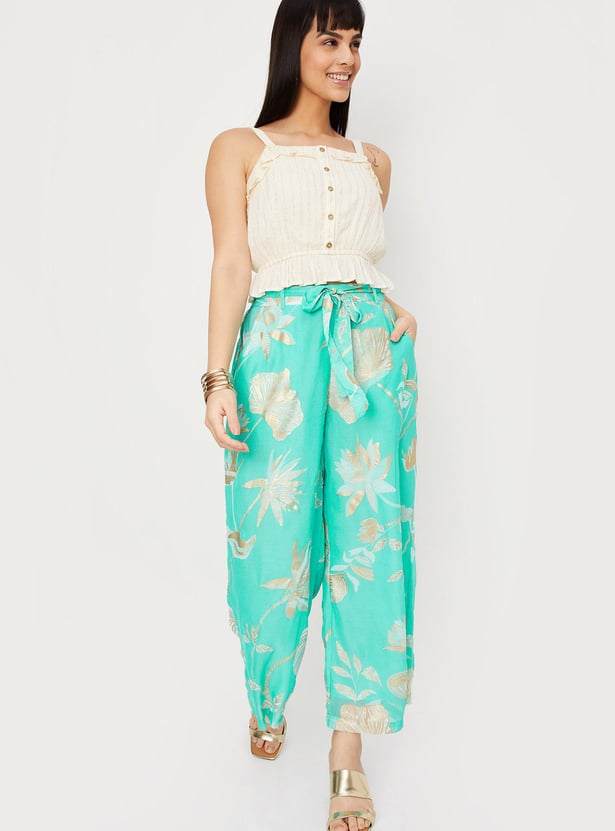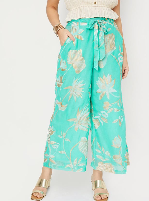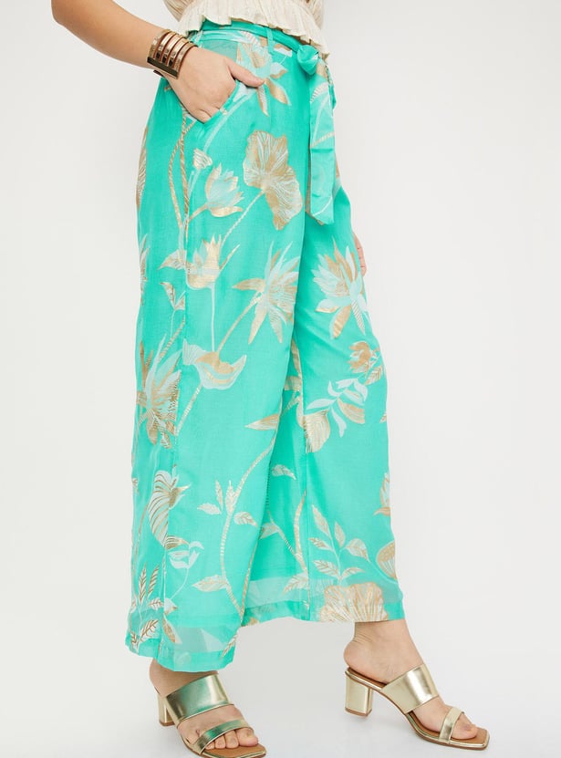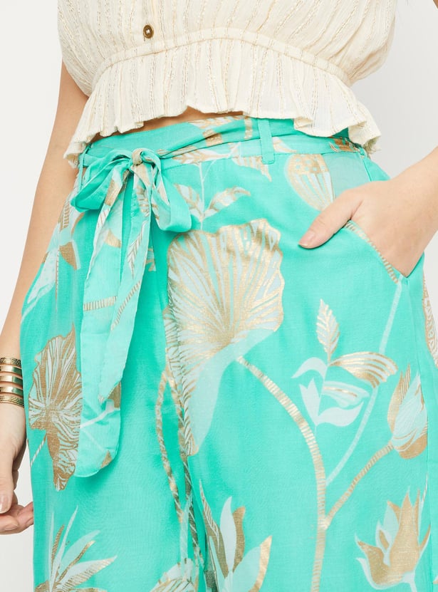 Women Printed Belted Palazzos