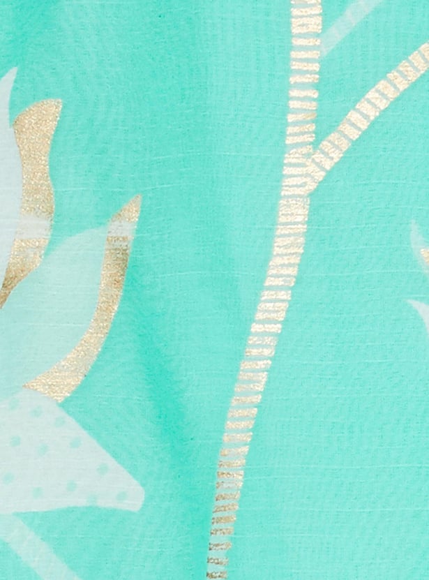 Breezy and chic, this pair of palazzos is updated with floral prints all over. It has a partially elasticated waist with belt loops, a fabric belt, side pockets, and a flared hem. For a fusion look, team up this pair of palazzos with a crop top and block heels.