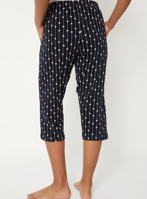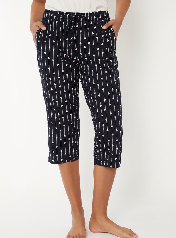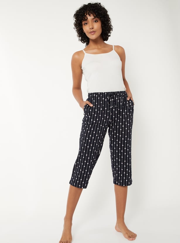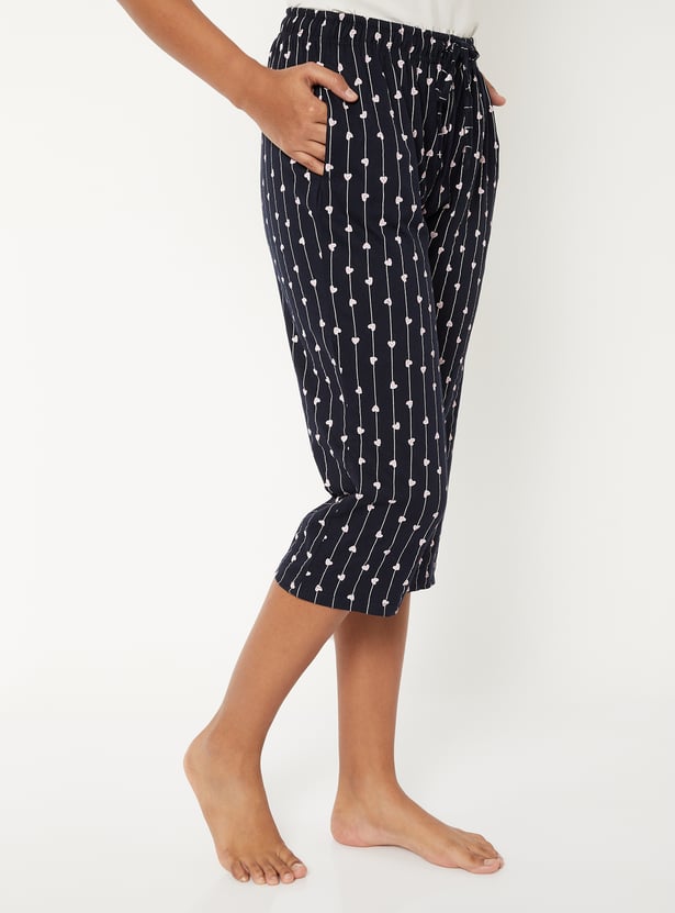 Upgrade your loungewear game with these fashionable capris. The elasticated waist is completed with drawstrings. The all-over charming print maintains your style and ensures the utmost comfort during your bedtime routine.