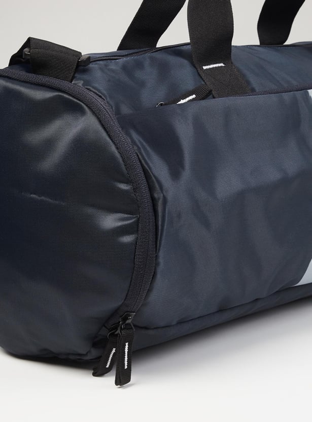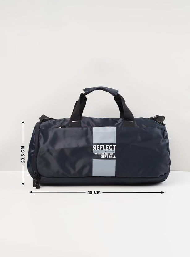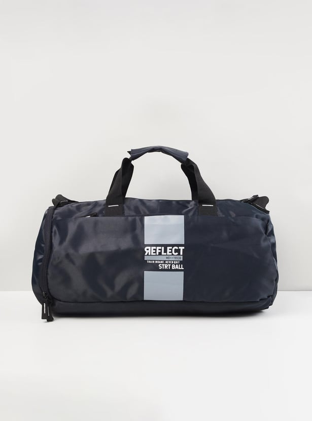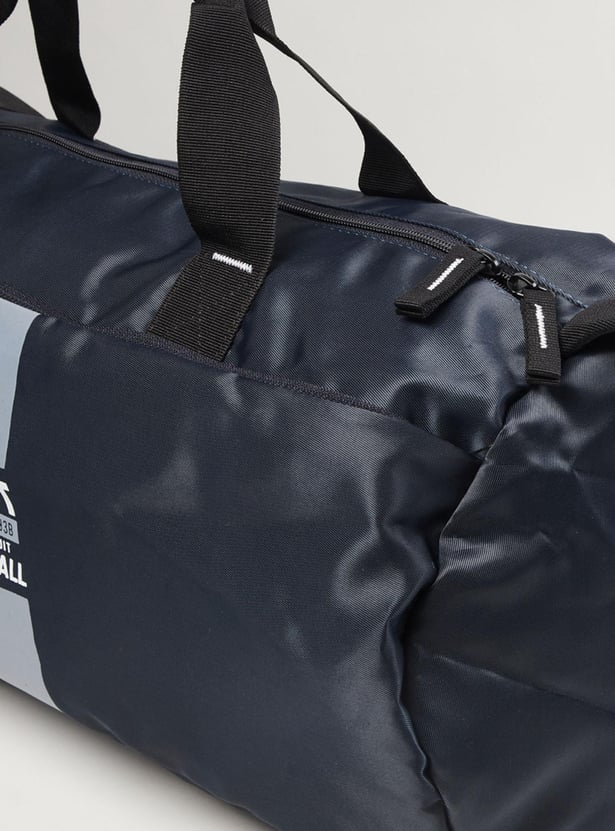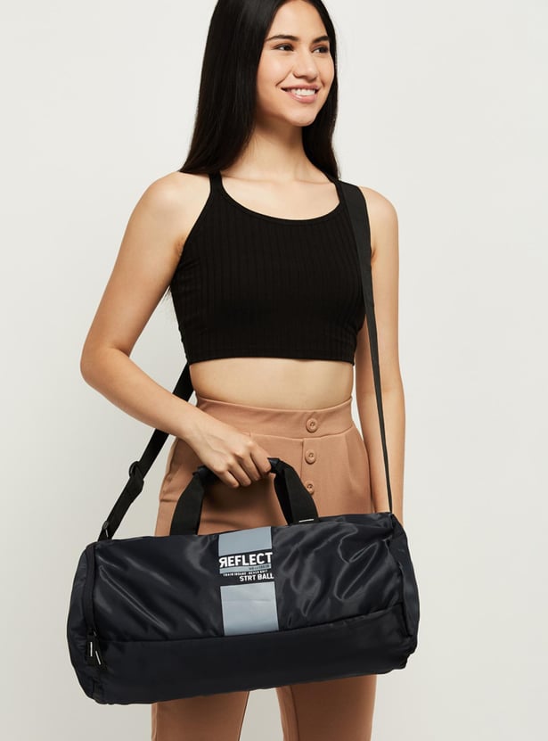 Keep your training essentials organized and ready to go with this gym bag. It features a printed surface, front and side pockets, and a top zipper entry that opens to a spacious main compartment. The flat handles and an adjustable shoulder strap make it easy to carry the bag around.