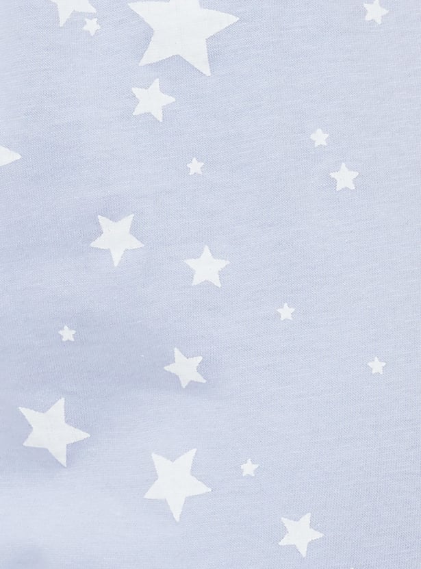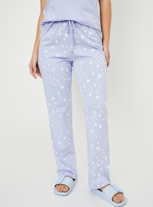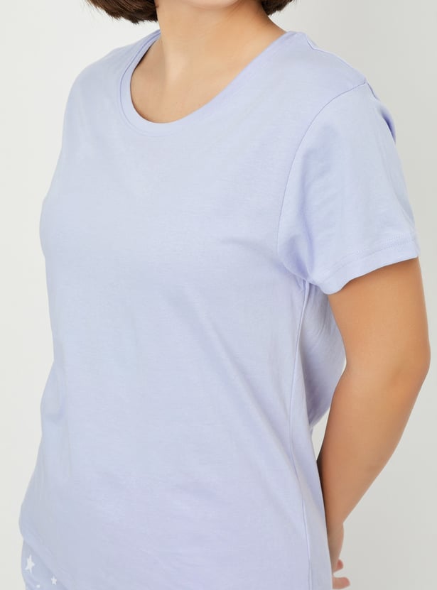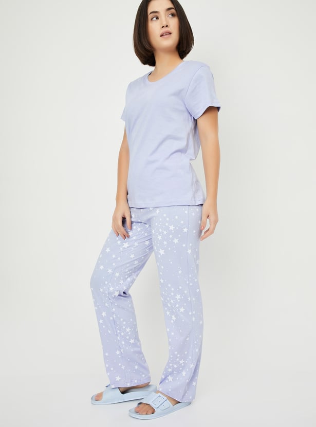 This sleepwear set features a printed round-neck, half-sleeve t-shirt paired with elasticated waist pajamas for ultimate comfort. Perfect for a relaxed night in.
