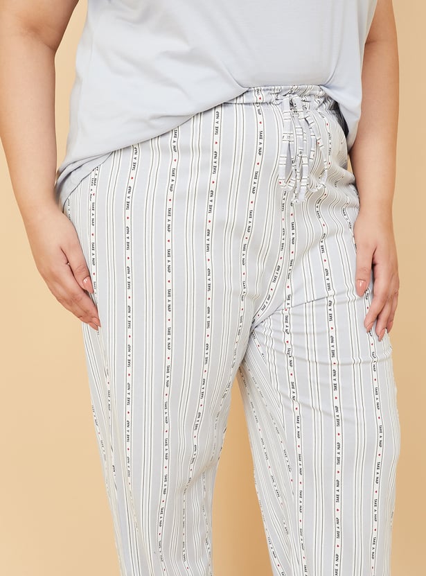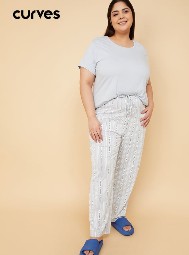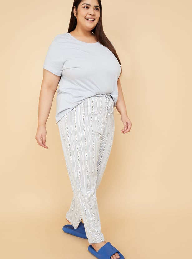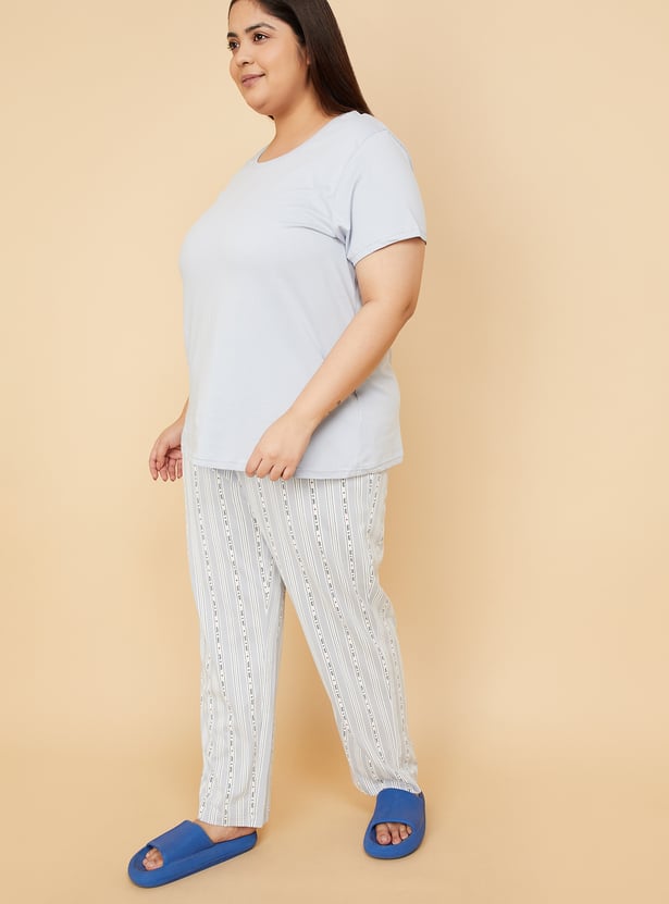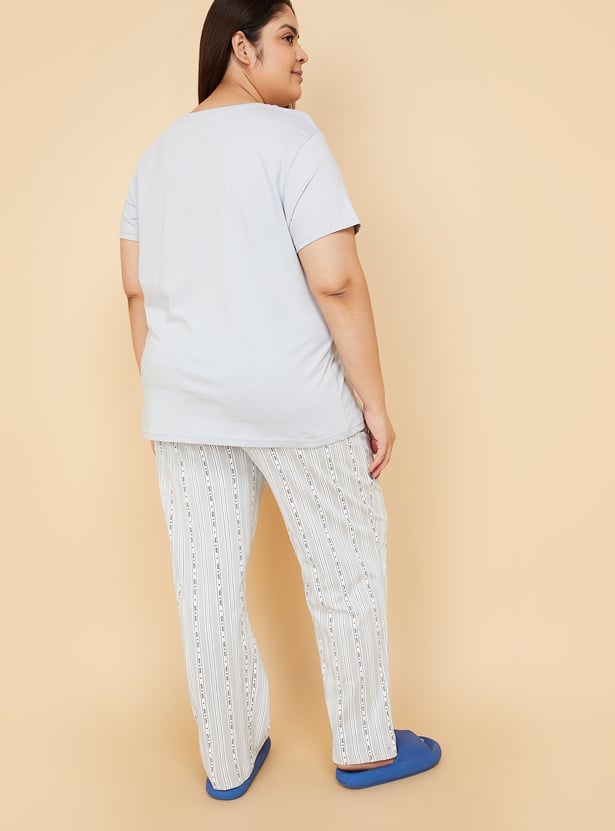 Comfort meets style in this printed PJ set. The solid T-shirt features a classic round neck and half sleeves, while the printed pyjamas come with a drawstring closure. Soft, breathable, and perfect for winding down. Model Size :