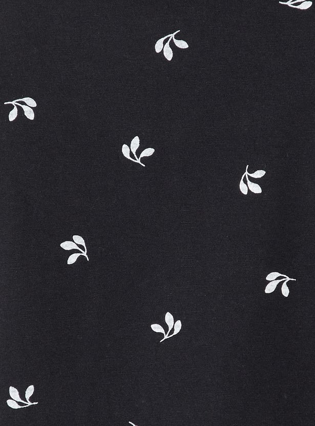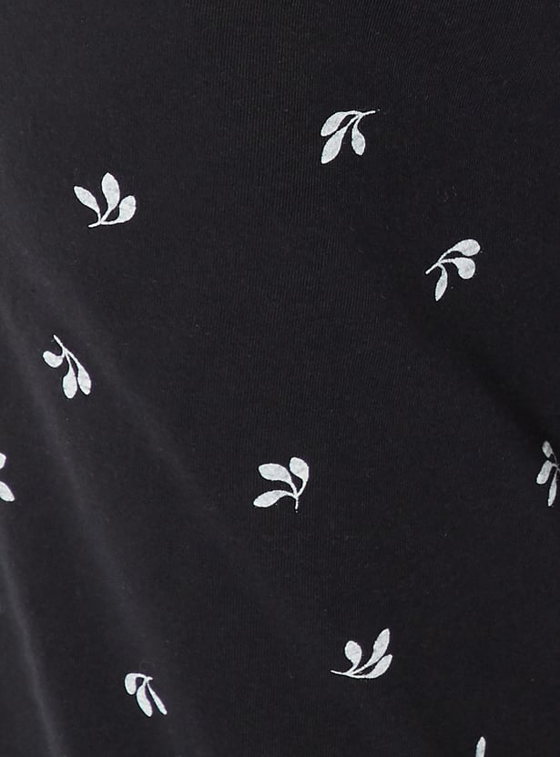 Indulge in the most comfortable fashion trends with this pyjama set. It has a floral printed surface, a round neck, and half sleeves. It is teamed up with a pair of printed pyjamas that have a drawstring waistline and pockets.