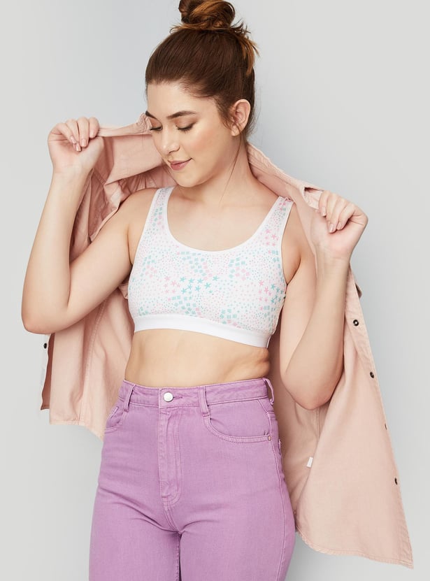Spruce up your everyday essentials with this beginner bra. It is designed with attractive prints, padded cups, and a non-wired profile to help you power through the day.