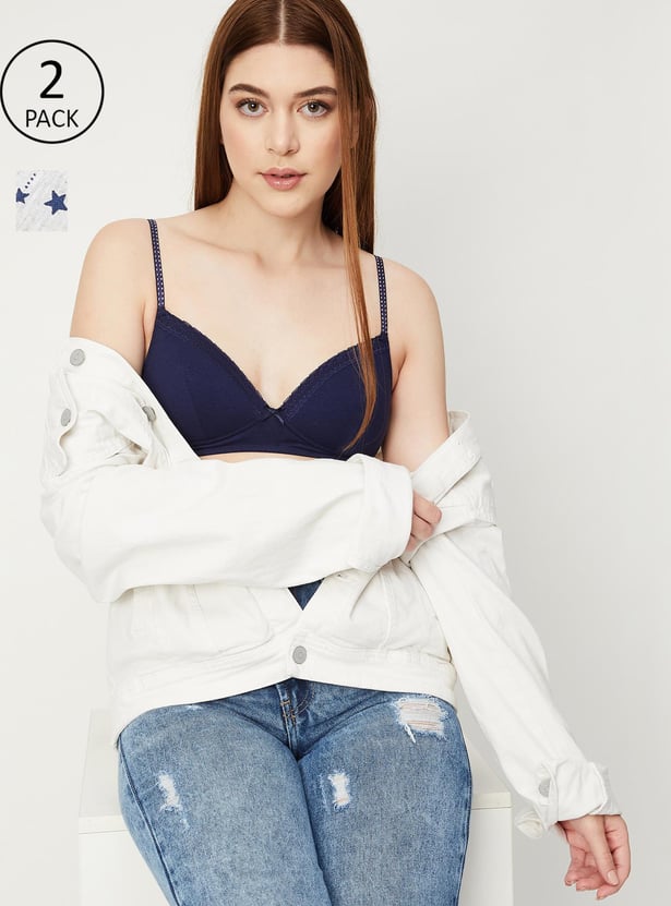 Women Printed Padded Non-Wired Bra - Pack of 2