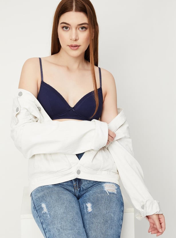 Power through your day in comfort with this pack of bras. It includes a printed bra and a solid bra with printed straps. This set of bras is designed with padded cups and a non-wired profile.