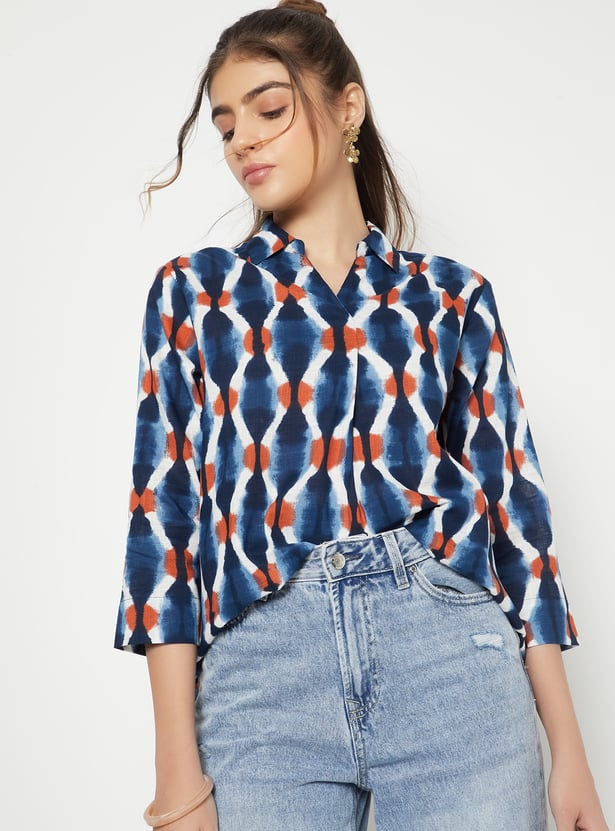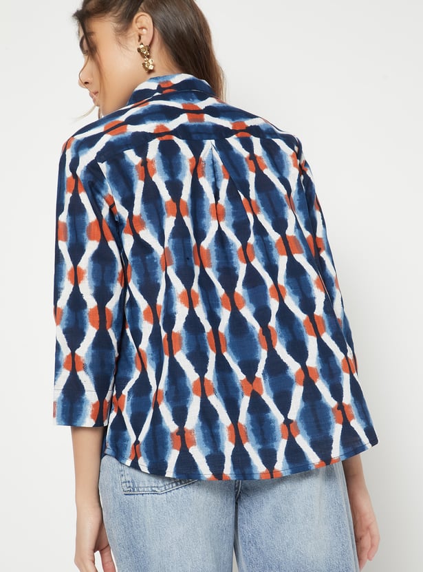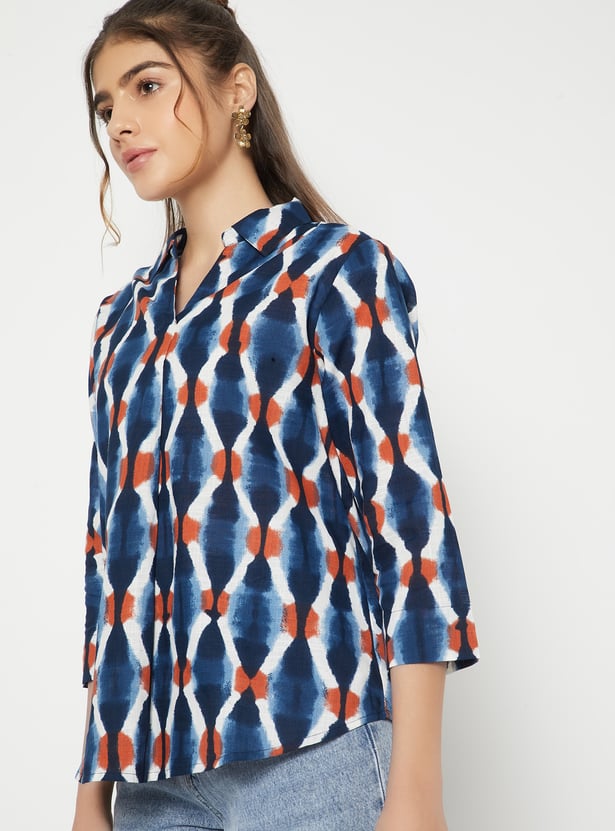 Add a stylish update to your wardrobe with this printed shirt, designed with a neat button placket for a polished look. The 3/4th sleeves offer a balanced silhouette, making it a versatile choice for both work and casual outings.
