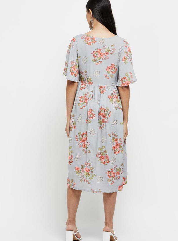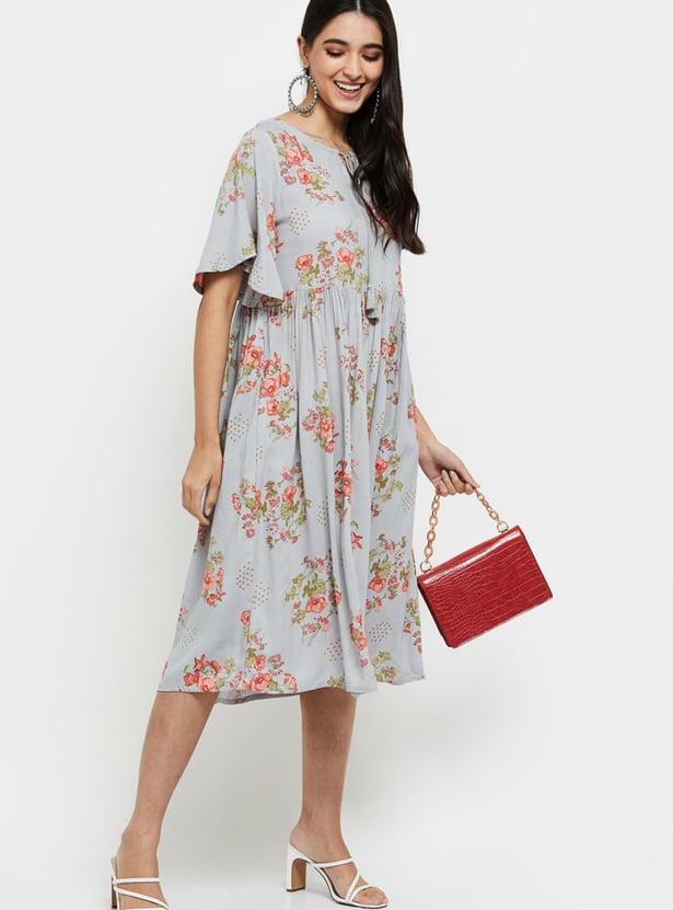 Women Printed Short Sleeves A-line Dress