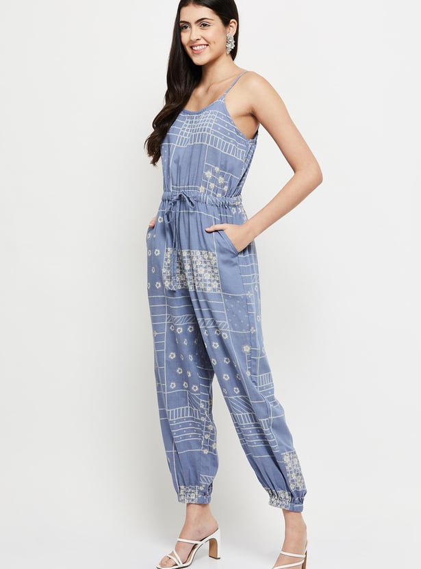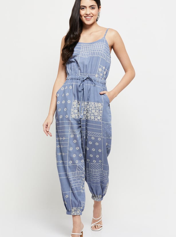 Women Printed Sleeveless Drawstring Waist Jumpsuit